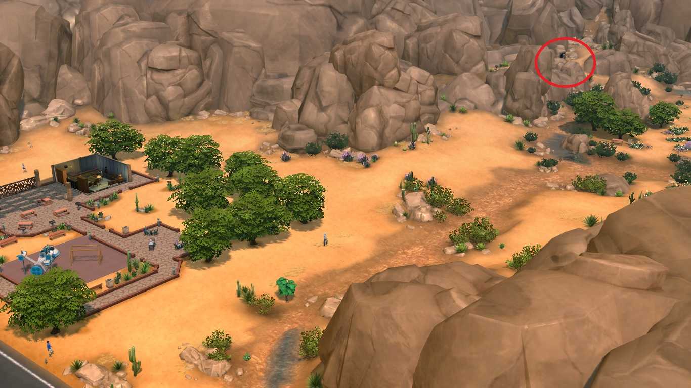 Вторым потайным местом в Симс 4 является Забытый Грот, он находится в локации Оазис Спрингс. Для того что бы проникнуть туда, необходимо посетить общественный участок – парк Пустынные цветы, именно на нем и располагается портал в тайное место.