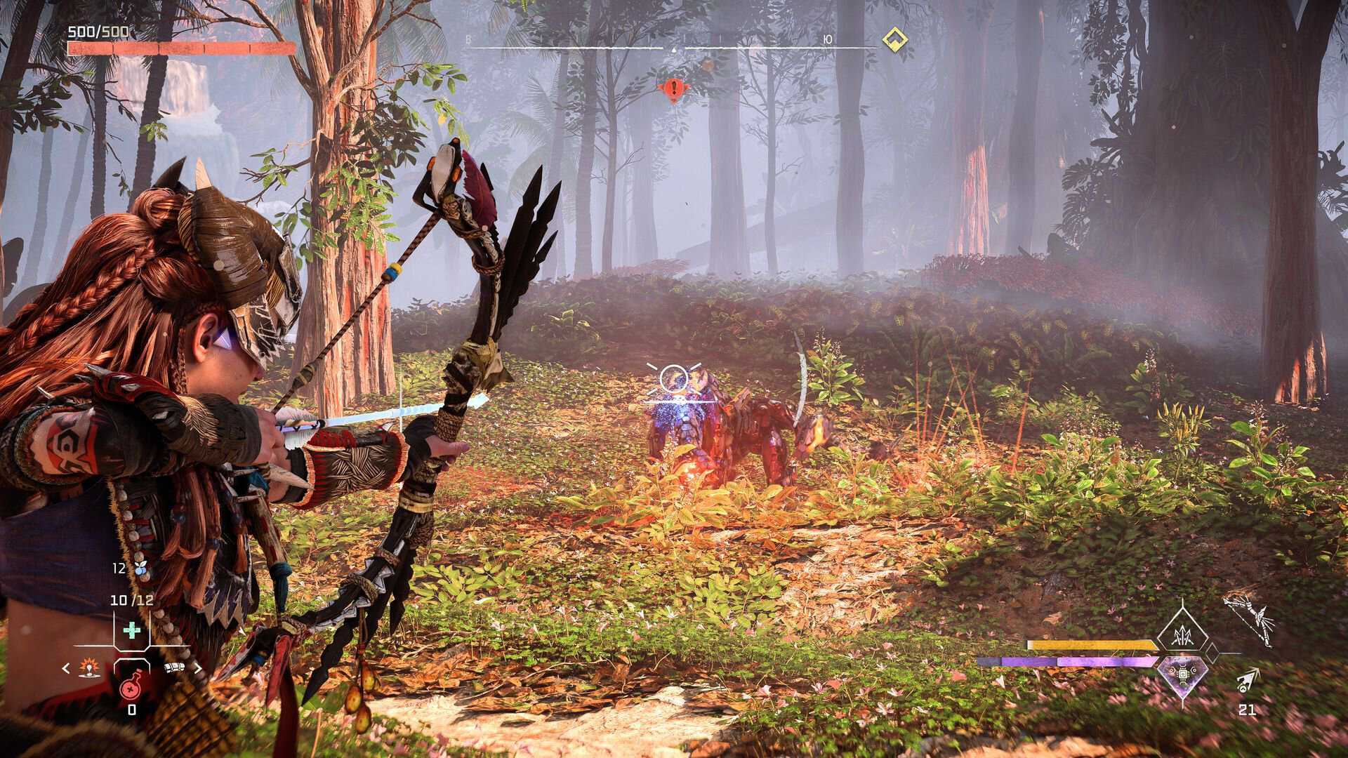 Еще важная механика – возможность перехватывать не только ездовых роботов, но и боевых. В таком случае они временно сражаются на стороне героини – им даже можно задавать конкретную цель с помощью специальных стрел.
