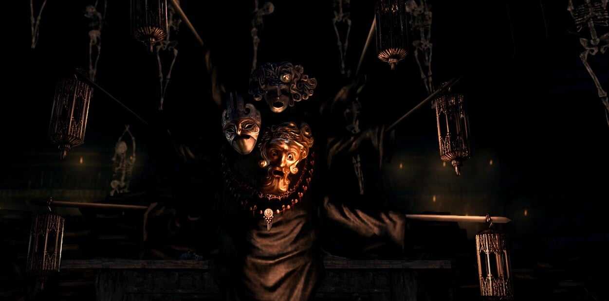 Но вам может выпасть маска ребенка или матери. В их описании нет ничего особенно – только говорится о том, что это одна из трех масок Вихря, некроманта, который украл силу Повелителя Могил и теперь правит Катакомбами. А вот душа с него не падает, в отличие от всех остальных боссов в первой DS. Почему же у этого некроманта нет души?
