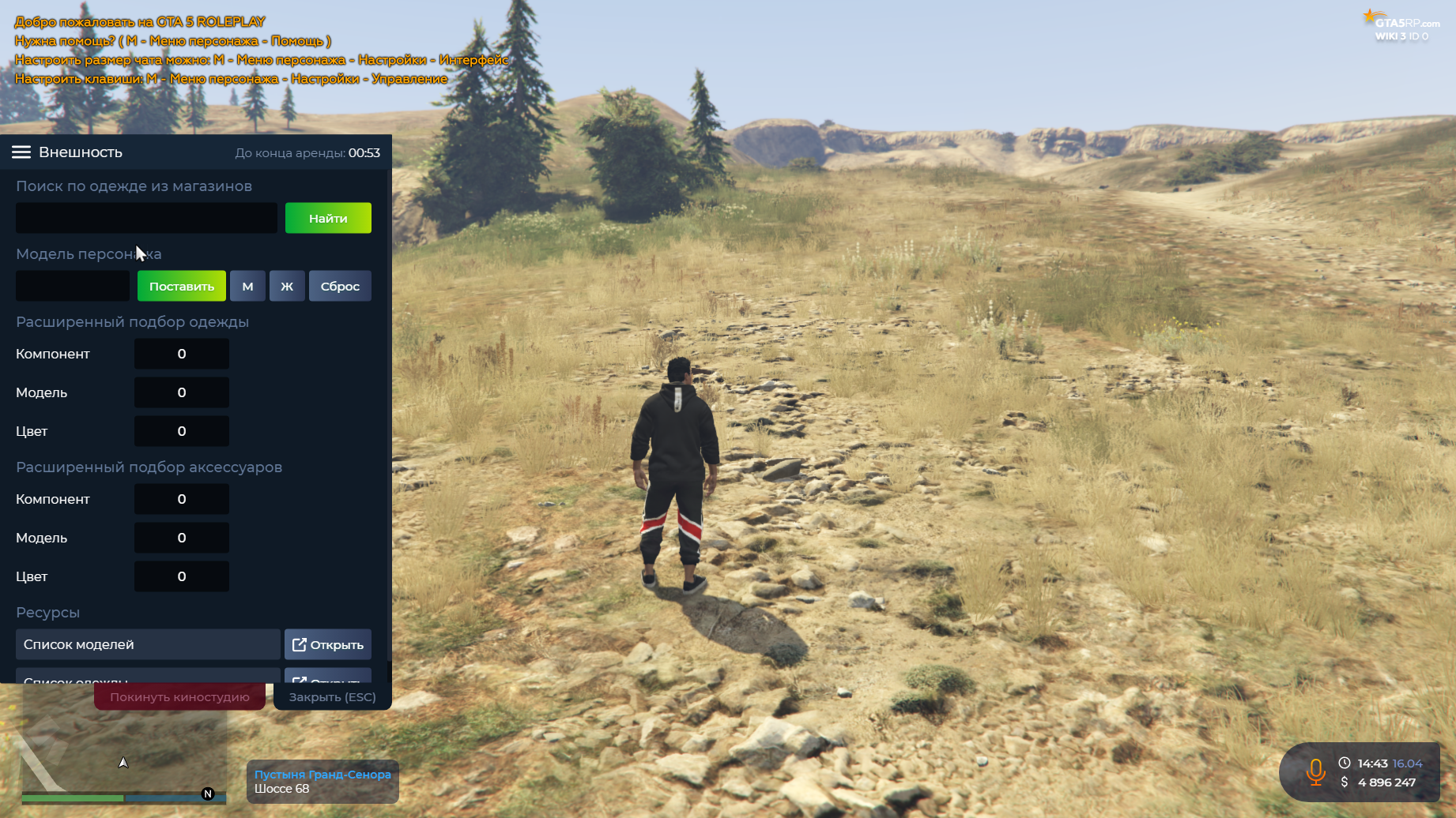 В этом разделе каждый участник сьемок может надеть на себя любую вещь из магазинов одежды, надев ее по названию, либо установить конкретную модель одежды или персонажа воспользовавшись ресурсами игры.