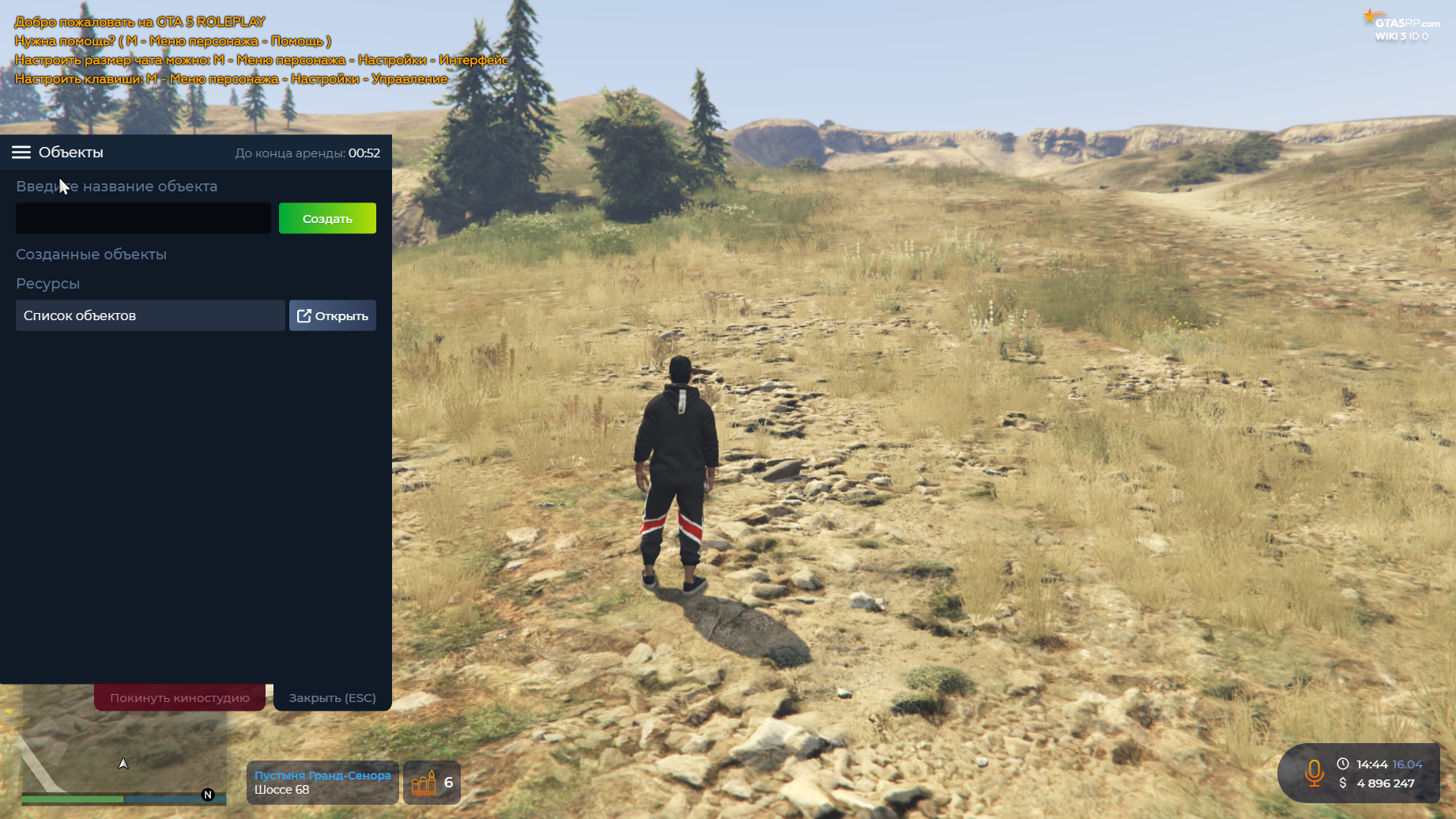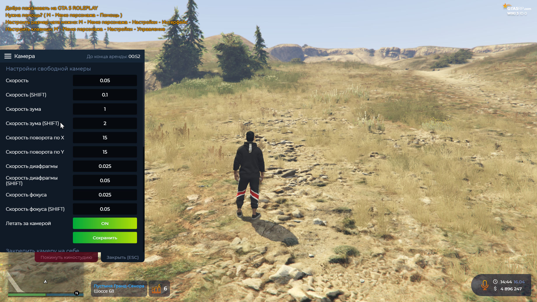 ️Обратите внимание: Для комфортной работы в киностудии рекомендуем включить отображение подсказок в F10 — Настройки, а также назначить клавиши для скрытия худа и подсказок. Основные горячие клавиши, используемые в режиме, Вы увидите при включении подсказок.