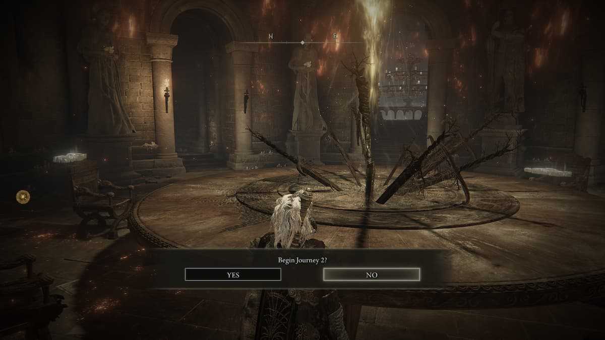 В Elden Ring игроки могут пройти Путешествие 2 сразу после завершения игры. Доступ к нему также можно получить из удержания круглого стола, если игроки не выбрали сразу Путешествие 2. Ваше вооружение, Духи, Колдовство, Заклинания и атрибуты останутся нетронутыми. Однако все Великие руны, собранные при победе над боссами, исчезнут.