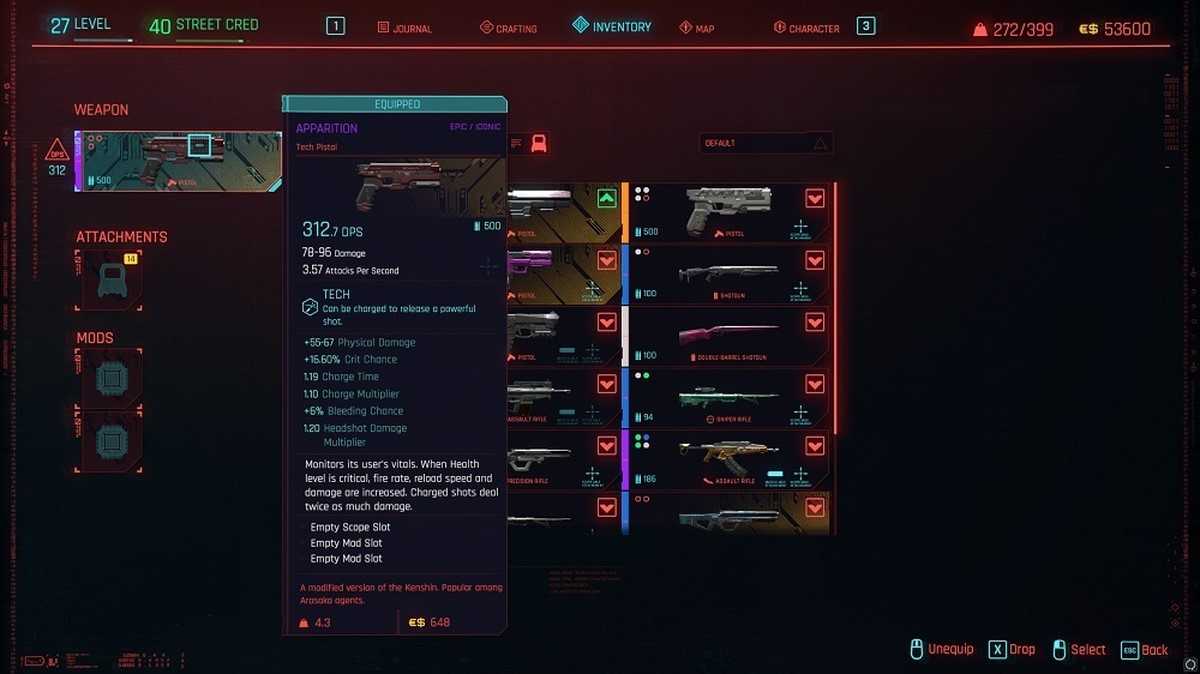 Наваждение — один из самых мощных пистолетов в игре по показателям урона, поэтому была бы настоящим преступлением не включить его в наш список лучшего оружия в Cyberpunk 2077. Но не только убойными характеристиками пистолет примечателен, ведь на нем установлена интеллектуальная система, которая следит за уровнем здоровья владельца и в критические моменты значительно повышает скорострельность, время перезарядки и дополнительно повышает урон от стрельбы. При желании вы можете вовсе удвоить урон, если перед выстрелом предварительно зарядите пистолет.
