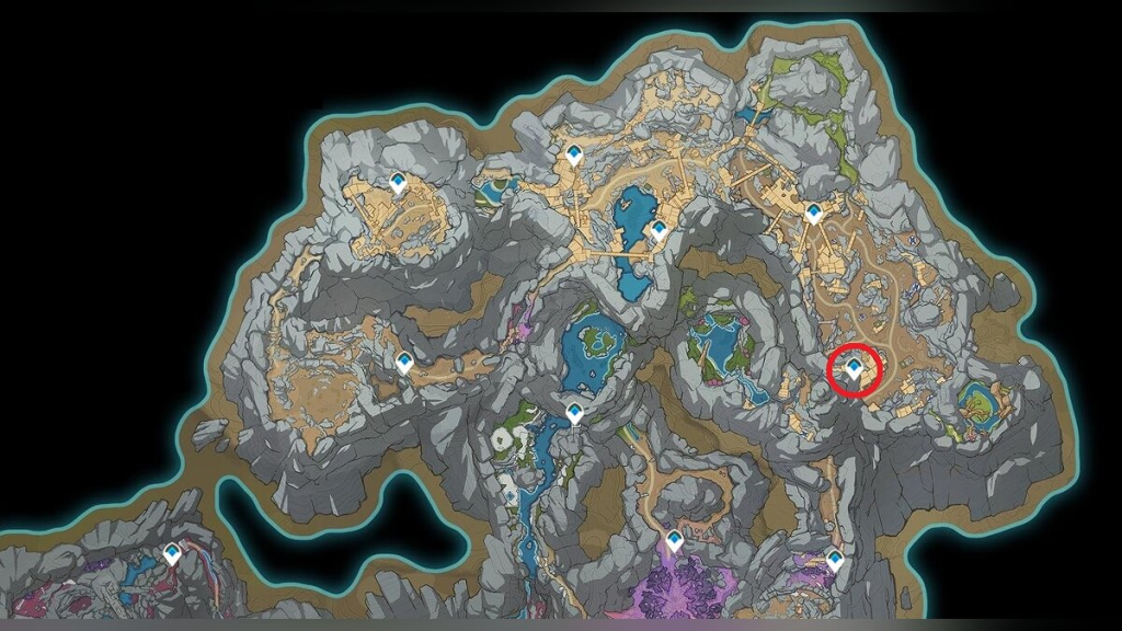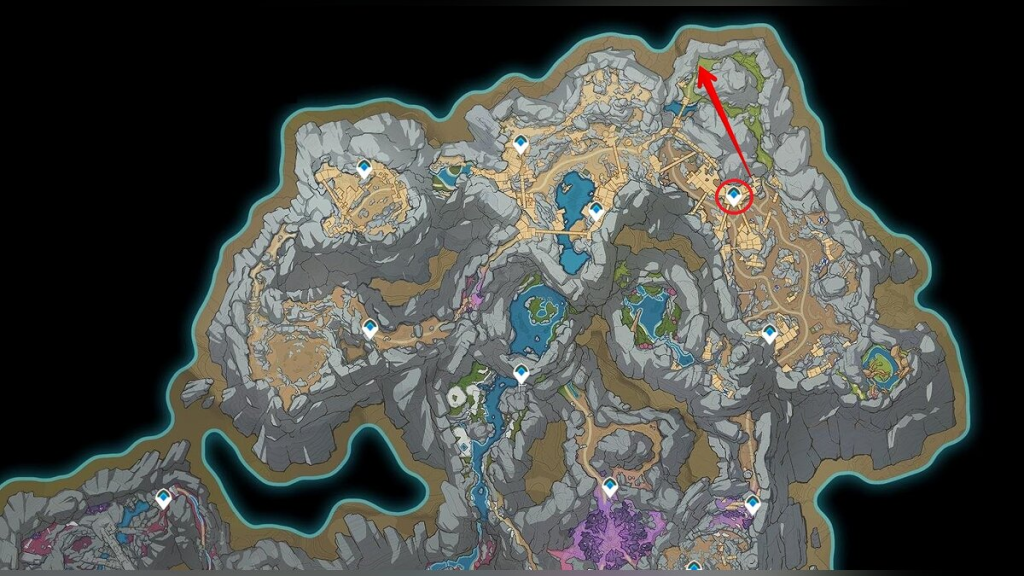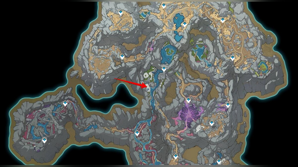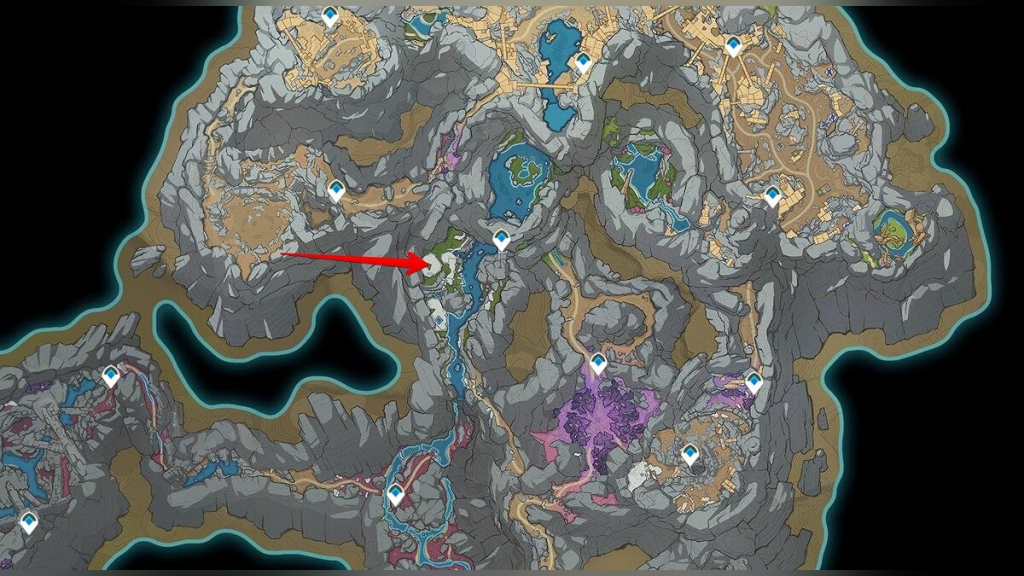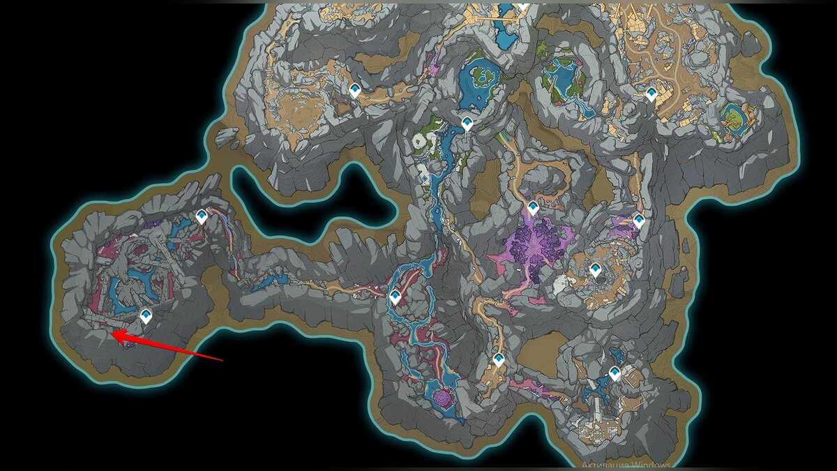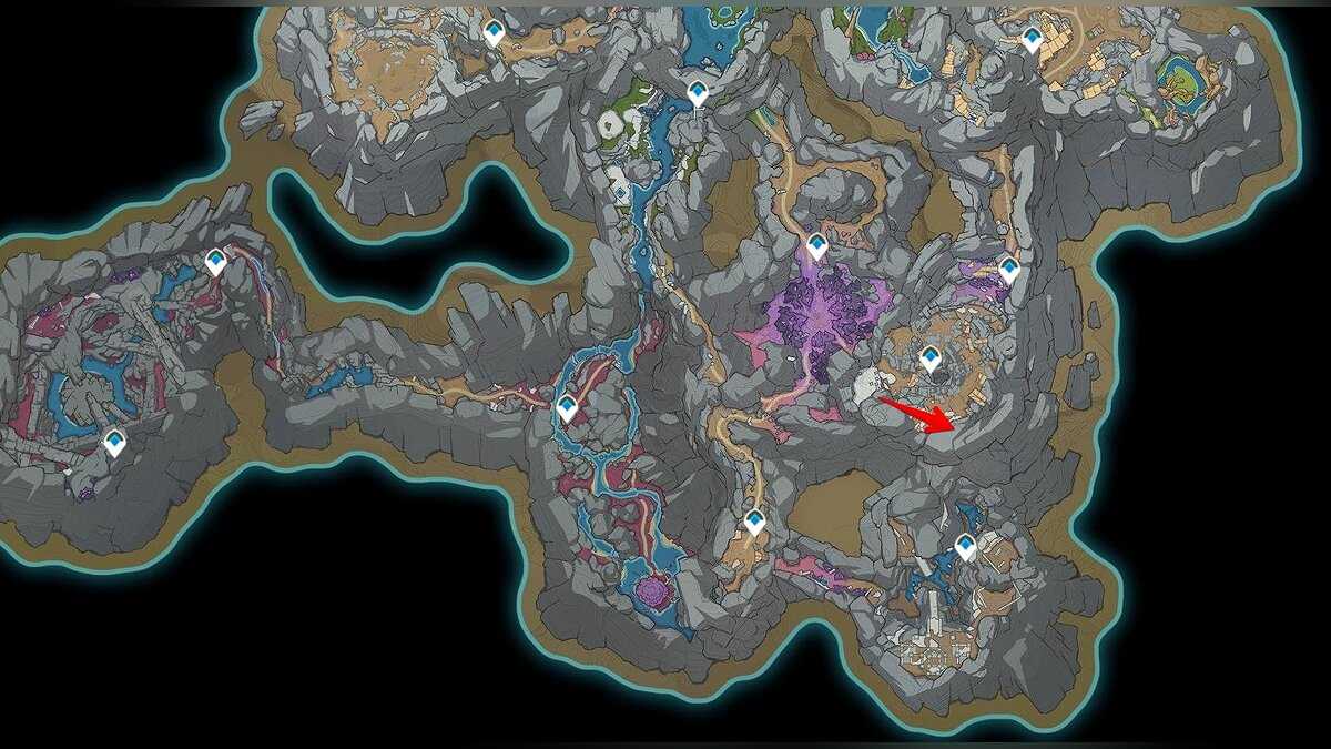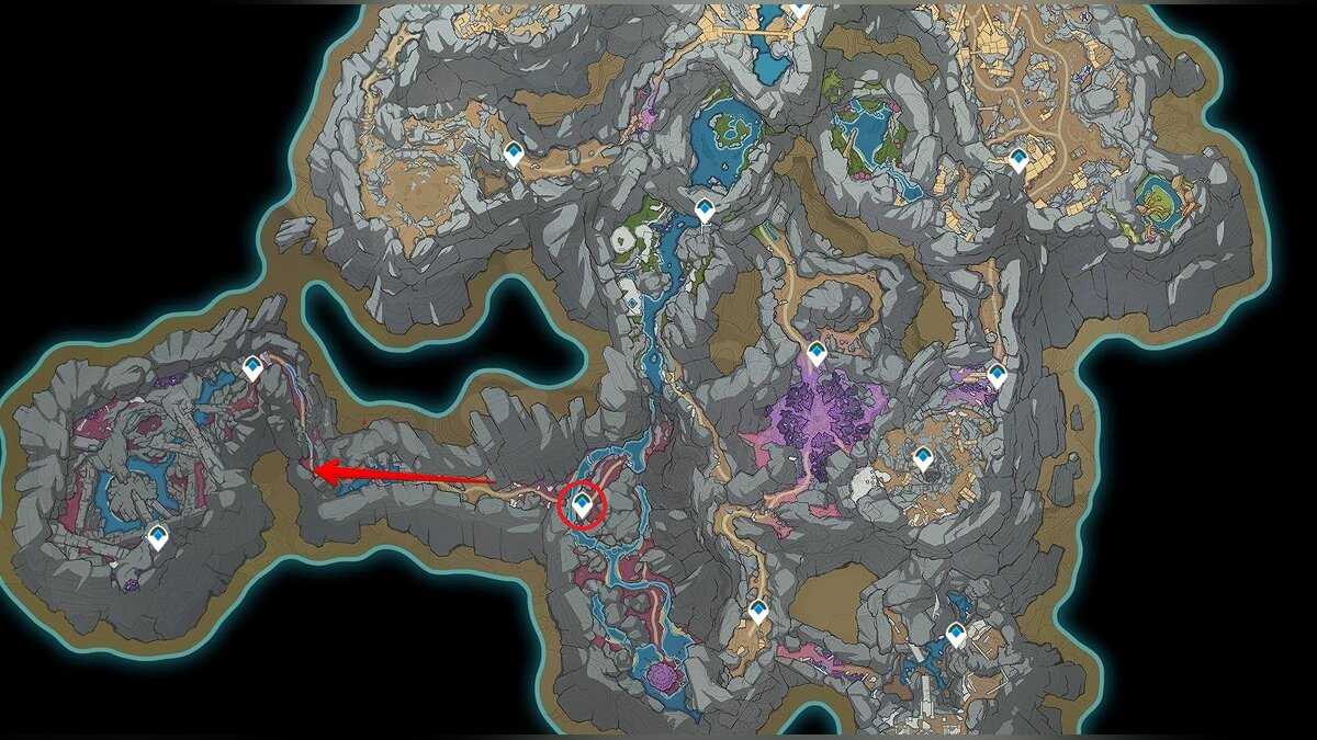 «Затвор» находится внизу, в ущелье. Здесь 4 нужных Гео-скопления.