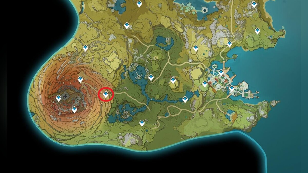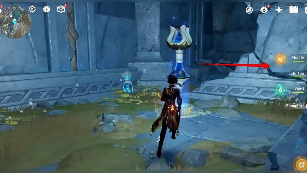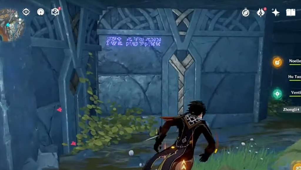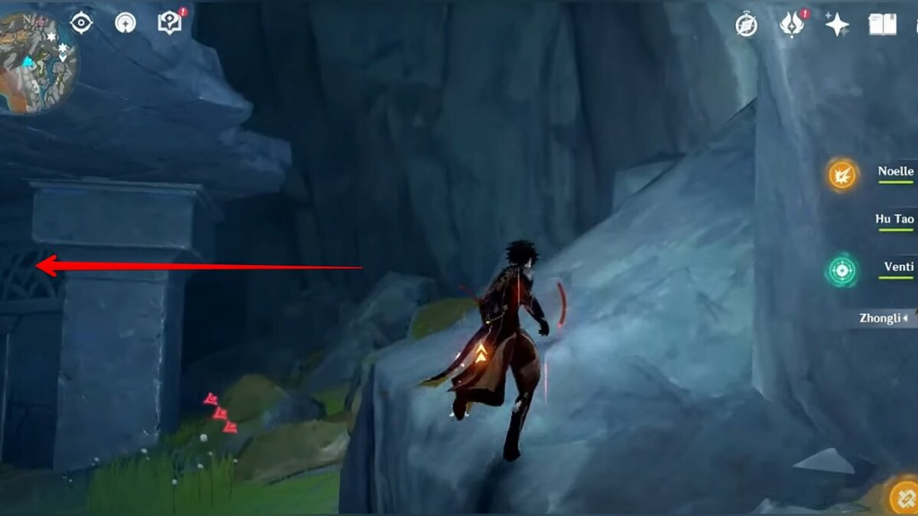 Первый затвор находится недалеко от очередного телепорта, если пойти по дорожке в направлении метки квеста. Геограны всегда рядом с клетками «Гео скоплений», просто внимательно осматривайтесь.