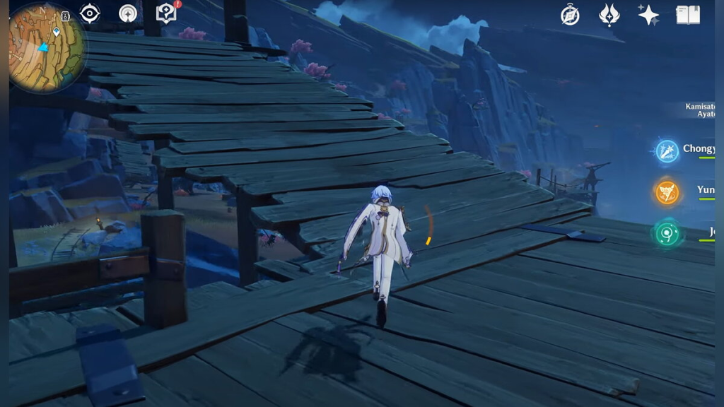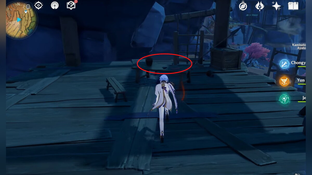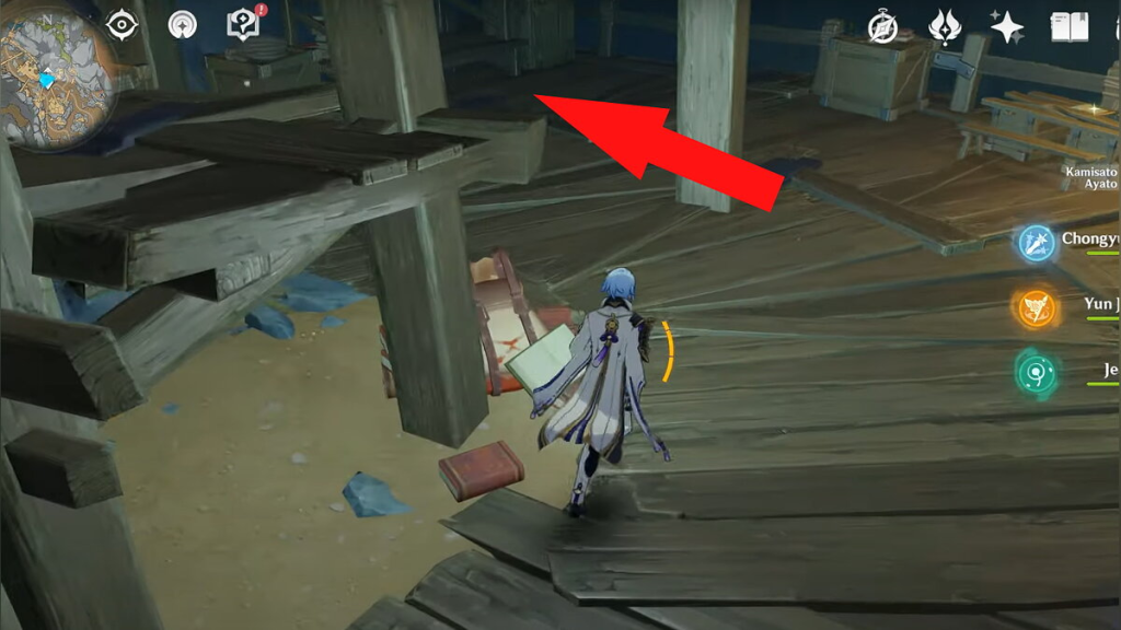 Вы получите еще один мировой квест «Проникновение в стан врага» и очистите площадку для последней атаки «Затвора». Берите звездочку геогранума снаружи домика и активируйте «Гео скопление» в самом доме в направлении «Затвора» (заодно заберете сундук).