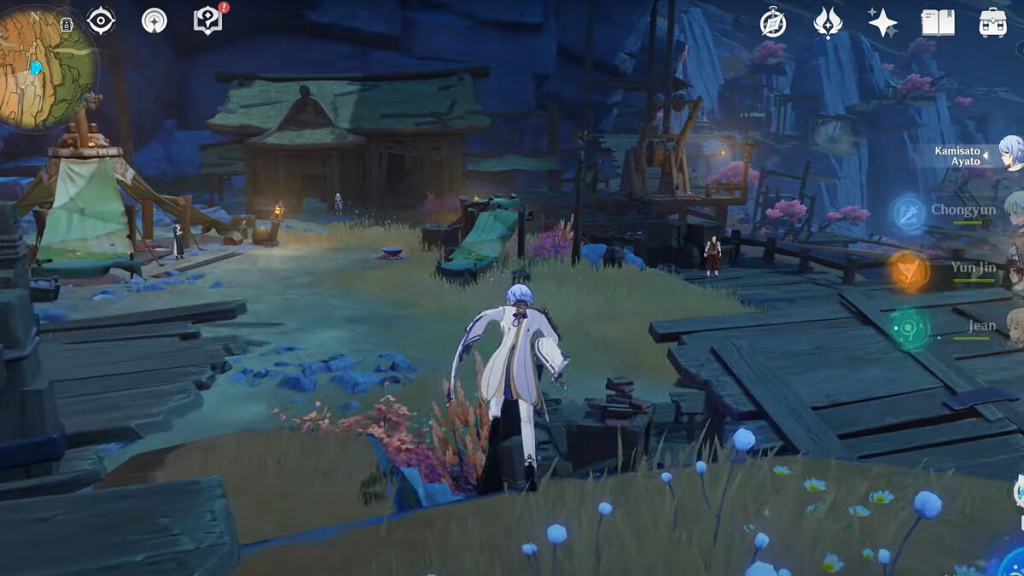 Перед вами появляется Чжи, и вместе с ней вы возвращаетесь в ее лагерь. Она поздравляем вас с вступлением в отряд гео разведки и представляет остальных членов команды.