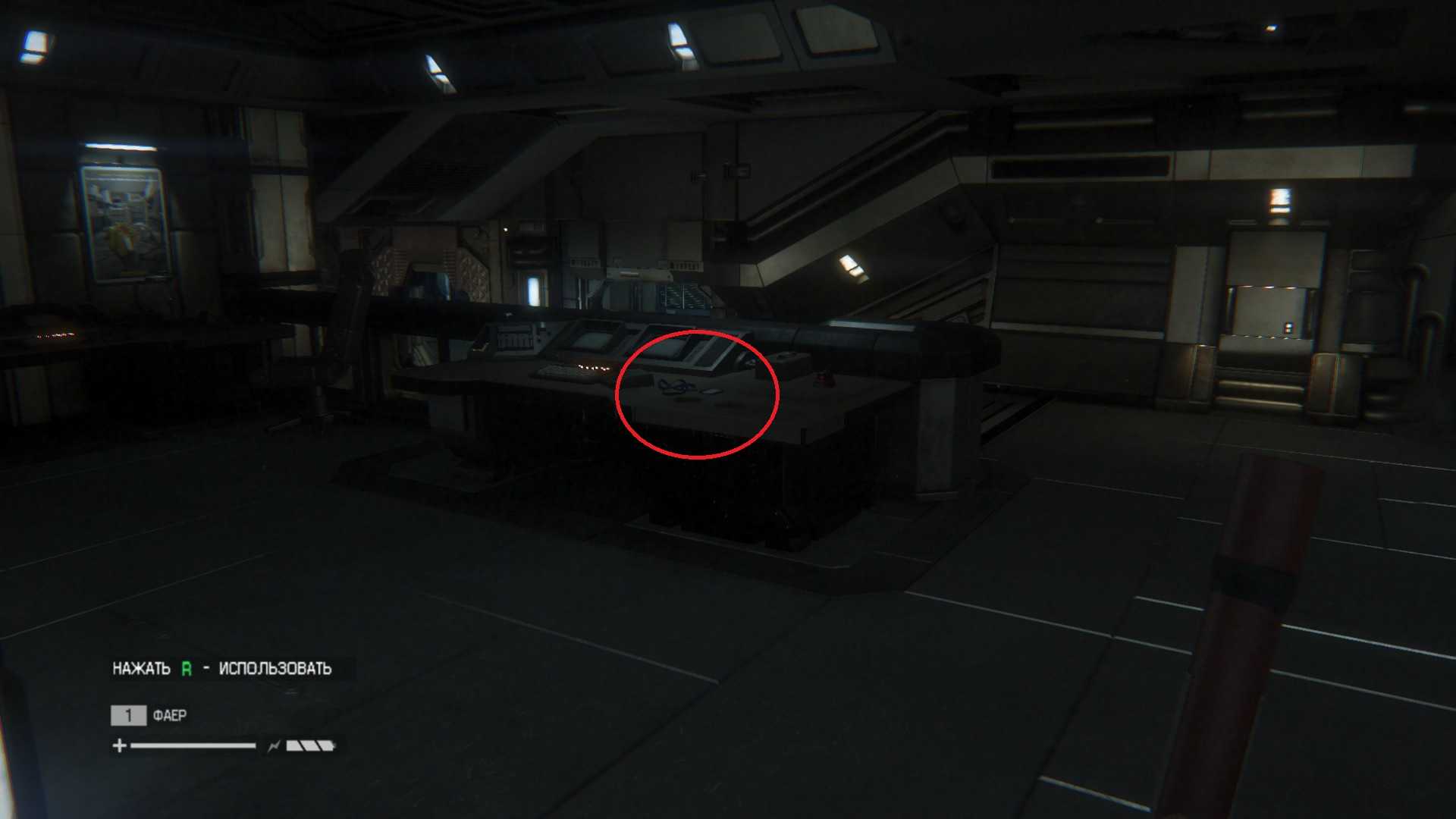 Доходим до круглого зала, находим клавиатуру, включаем интерфейс кабеля. Подходим к колонне в центре, нажимаем одиночный рычаг, затем большой двуручный рычаг. Сразу после включения ядра, в зал могут вбежать чужие, держим огнемёт наготове.