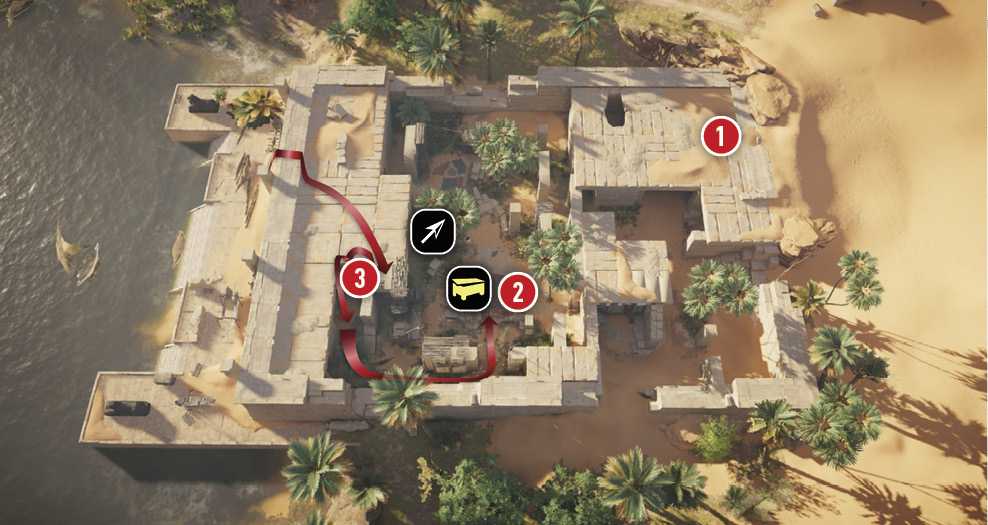 - Отправляйтесь на юго-запад к сфинксу и с помощью Сену найдите Рашиди в убежище Хенткаус.