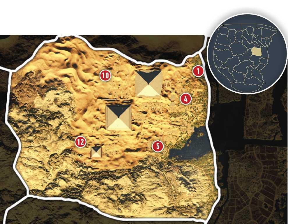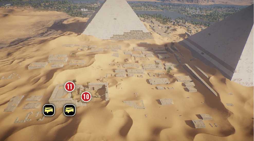 Отправляйтесь на север, и когда вы пройдете пирамиду, отправьте Сену над гробницей Хемона (10), чтобы оценить ситуацию. Двигайтесь к области (11).
