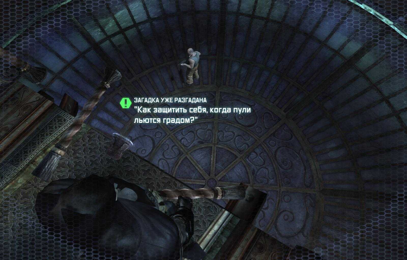 Когда заключенный бдит под стеклянным навесом, самое время обрушиться ему на голову. Для этого необходимо заложить бомбу над врагом и взорвать ее, стоя на стекле. Взрывная волна и куча осколков не принесут особого вреда, зато Бэтмен, словно появившись из ниоткуда, ударит обеими ногами и моментально нокаутирует противника. Будьте готовы к тому, что дружки последнего прибегут выручать его всей толпой.