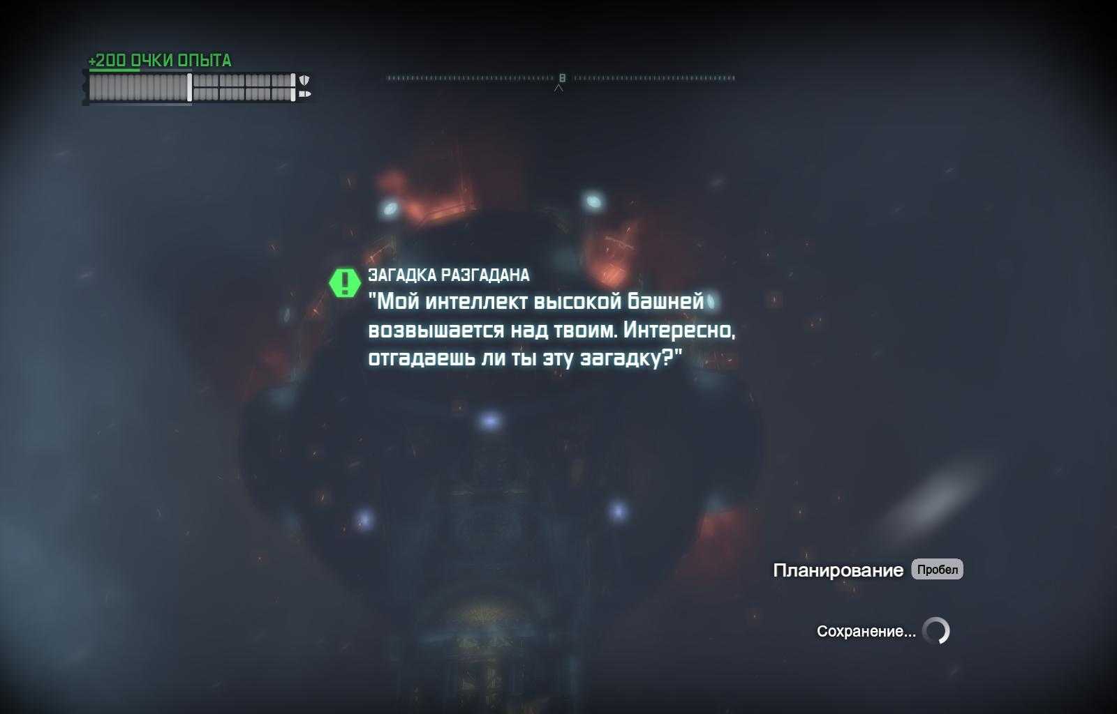 T4.4 – Замораживаем газ ледяным ударом. T4.5 – Открываем дверь шифровальным секвенсором. T4.6 – Ломаем перегородку гелем либо в полете и забирам загадку. T4.7 – Открываем дверь с помощью шифровального секвенсора. T4.8 – Открываем лифт шифровальным секвенсором и снимаем загадку с потолка.