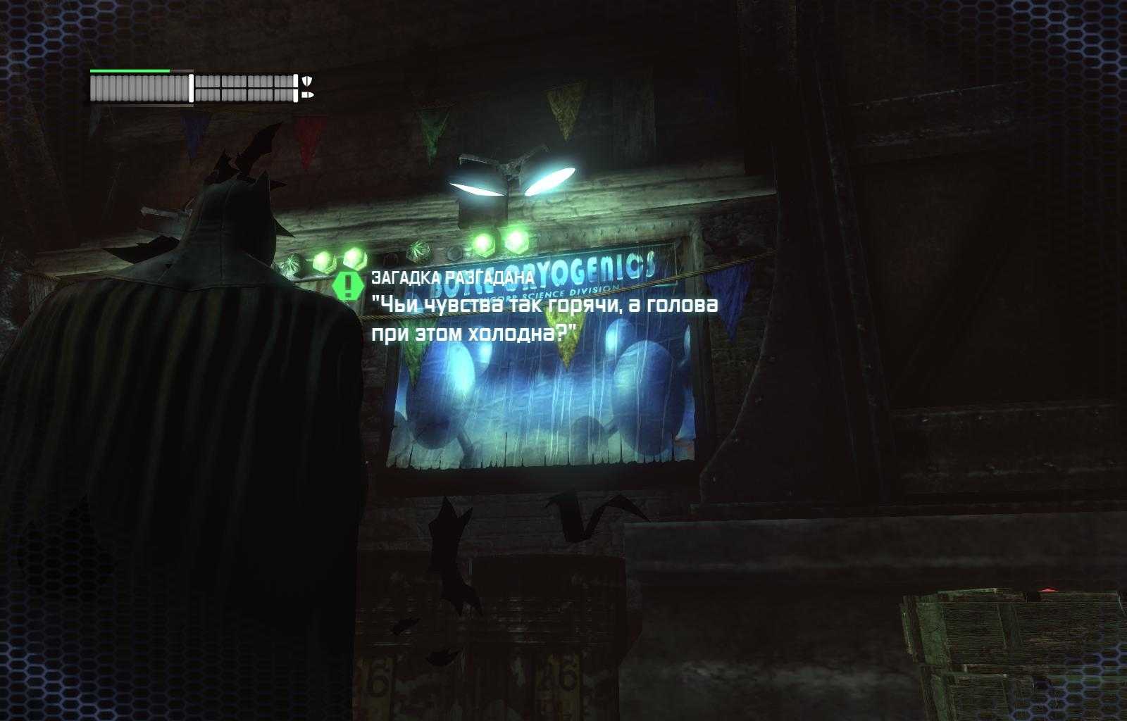 Получаем от программистки Барбары Гордон дополнительное задание. В городе есть шесть тайников с оружием Пингвина. Тайники указаны на карте, и найти их не составит труда. Тайники охраняют продажные полицейские, обезвреживаем их. После этого используем гаджет Деструктор, чтобы спалить красную панель на ящике с оружием.