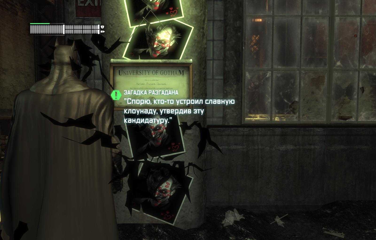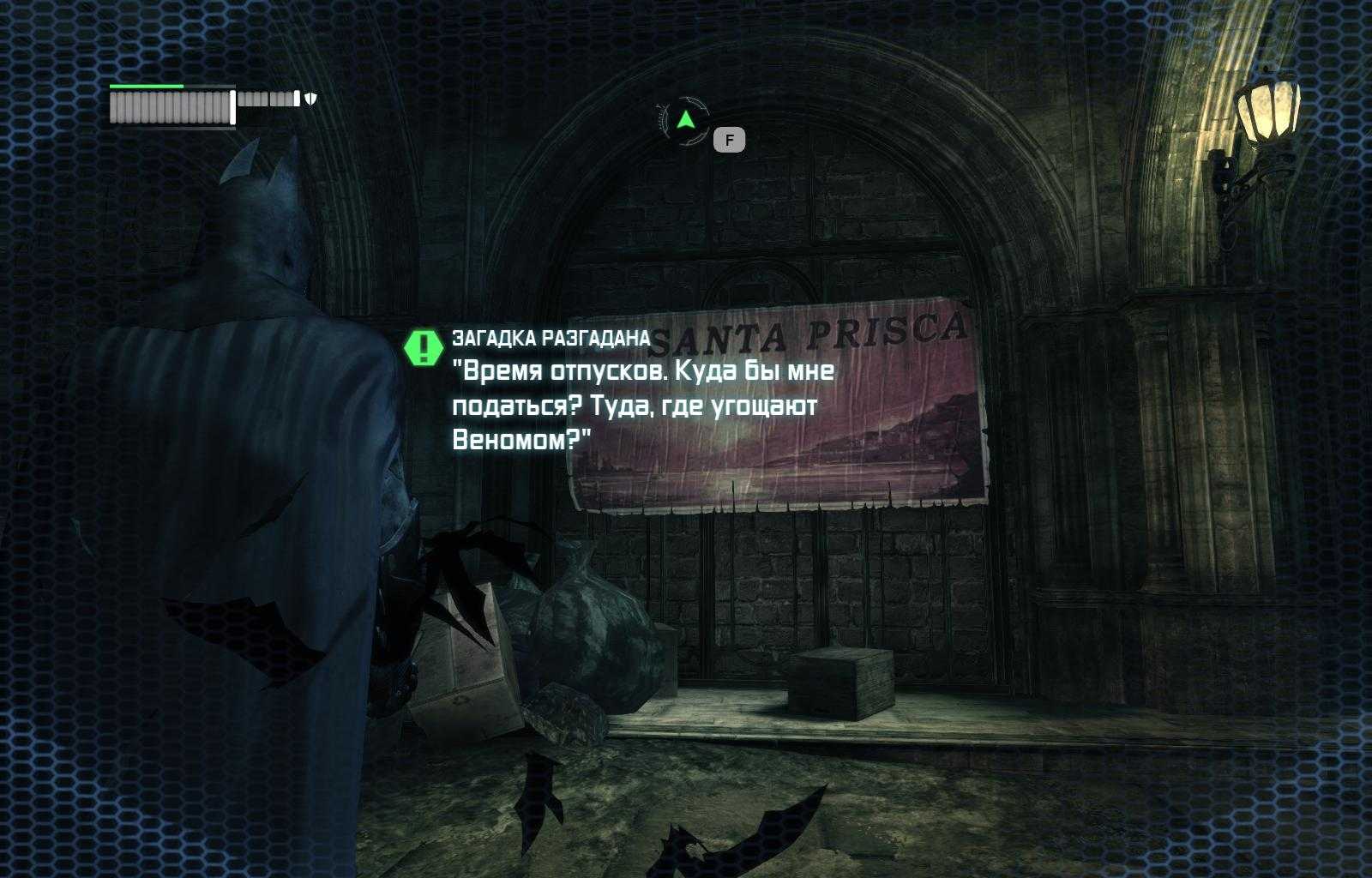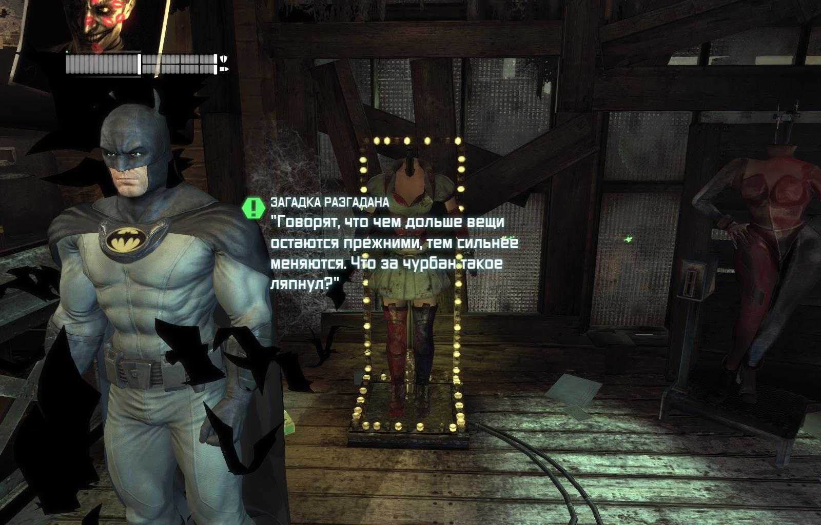 Когда у Дэдшота останется совсем немного здоровья, он скроется от Бэтмана и встанет рядом с заложником, прикрываясь им. В это время прибегут ещё 5 бандитов, но теперь с приборами ночного зрения и с запасом мин. Так же бесшумно обезвреживаем их. В конце незаметно подходим к боссу сзади и заламываем ему руки. Дедшот пойман.