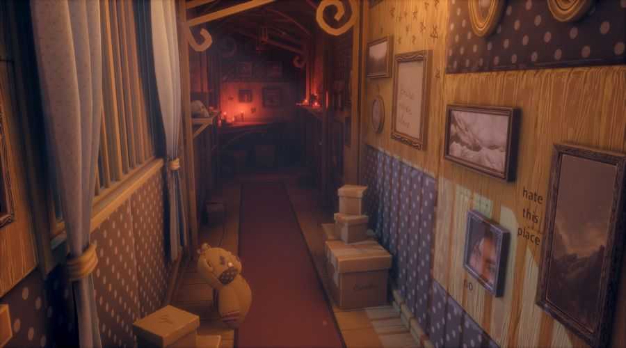 Посмотрите на картину в которую смотрит мишка на 20 сек. чтобы появилась надпись, позади вас в окне появится девушка в берете, а мишка исчезнет: