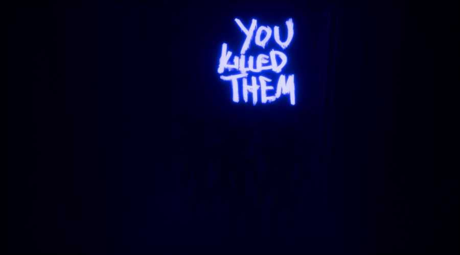 Возвращайтесь к окуну вы увидите Лили в темноте смотрящею в это окно, пройдите дальше вы увидите надпись «Вы убили их» и возвращайтесь обратно к выходу прихожей подойдите к двери, вас перенесут обратно продолжайте двигаться и так несколько раз: