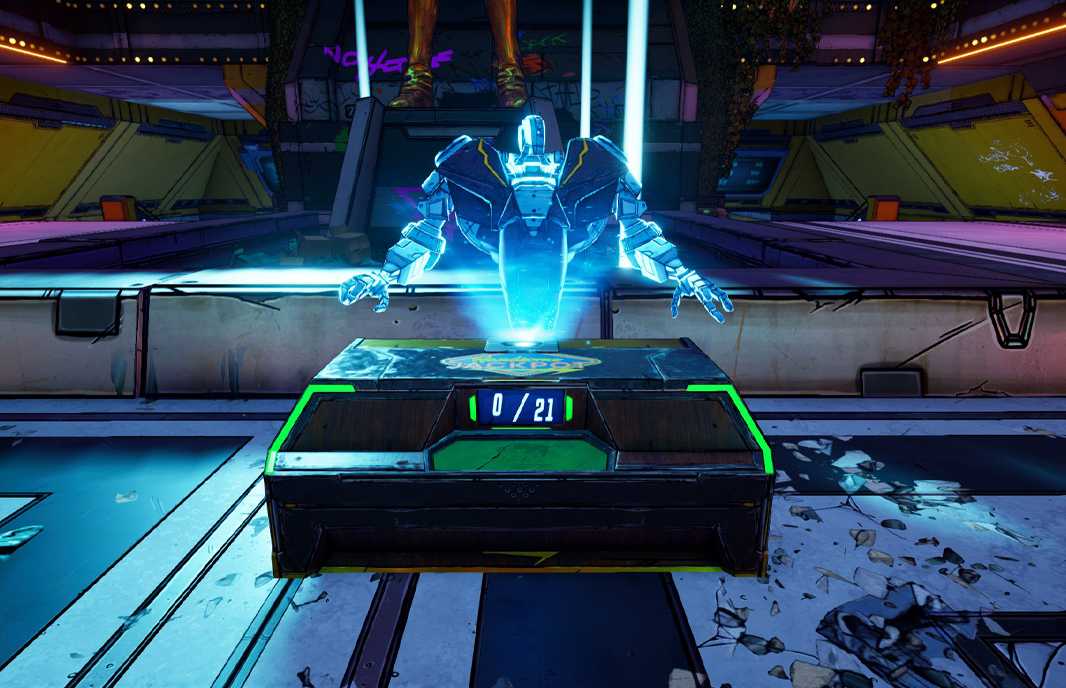 В баре Мокси стоят игровые автоматы. Вам нужно подойди к автомату «Loot Boxer» и пытаться выбить 2 маски психа. В награду вы получите взведенную гранату.