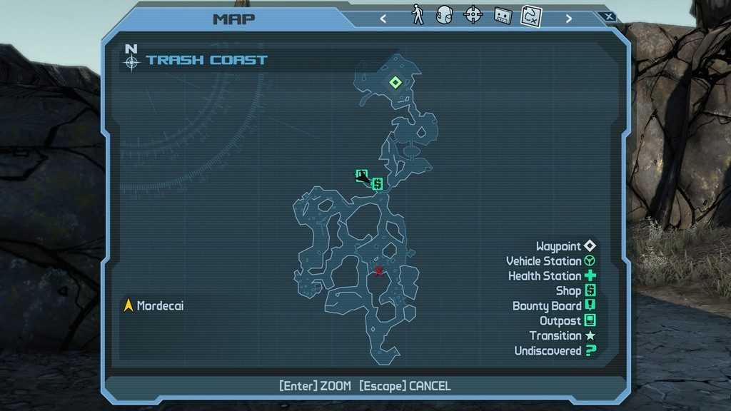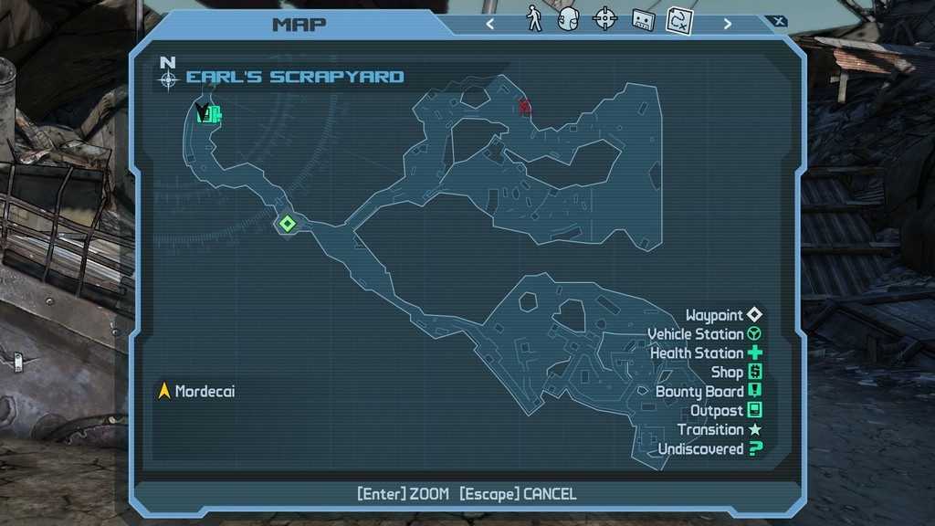Первый транспорт будет доступен после завершения задания Bone head’s theft — Ворюга раздолбай. Садитесь в багги и немного поколесите по локации Arid badlands, давя skag.