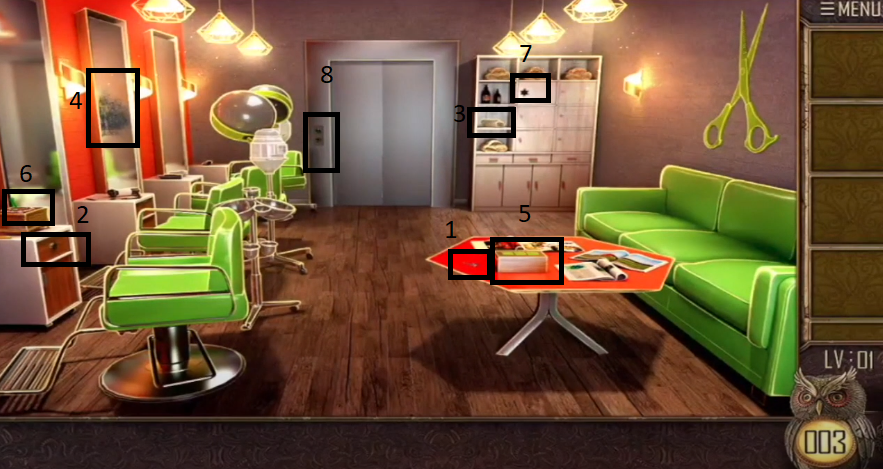 Теперь переместитесь влево, увидите полки, нажимайте на полки пока у вас в инвентаре не появится книга с кодовым замком, нажмите на табуретку и под ней магнит.