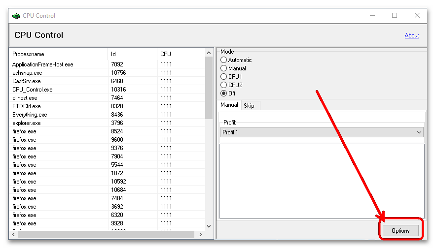 - Для доступа к ним воспользуйтесь кнопкой «Options», которая расположена в нижнем правом углу основного окна.