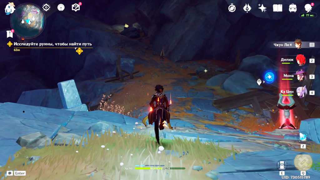 Этим «предметом» являются хиличурлы в углу, подходим к ним и смотрим кат-сцену с Дайнслейфом.