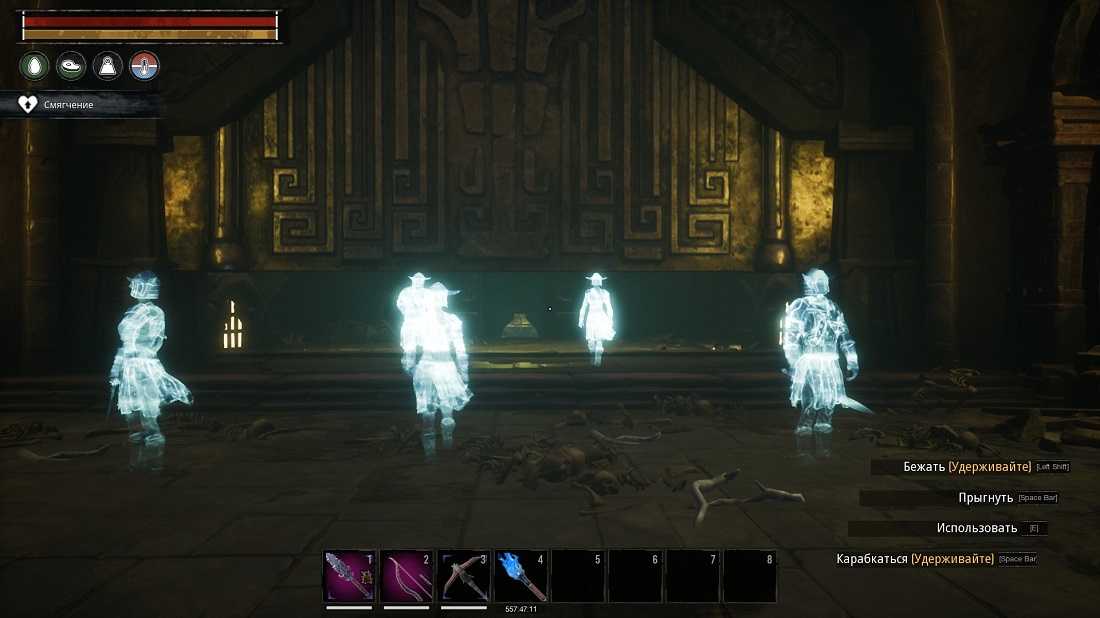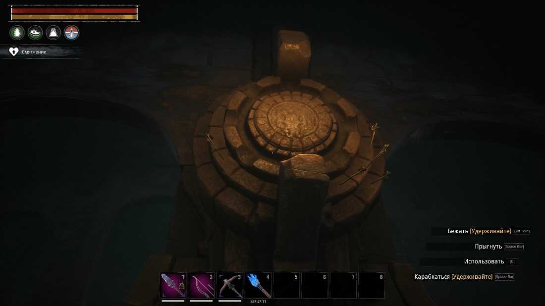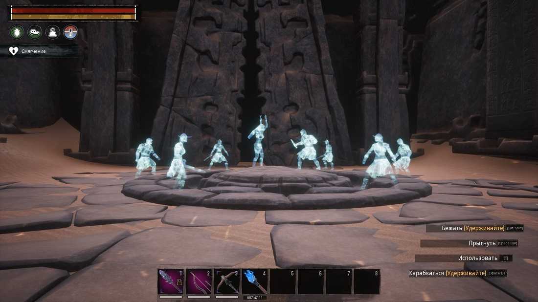 Осторожно ступай вперед, ловушками и нежитью наполнено святилище. Найдите призрака, у него будет ключ от арены или используйте трещину в стене