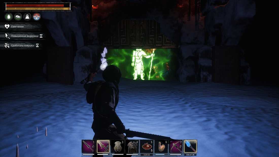 Двигаемся прямо через пещеру к двери с призраками:
