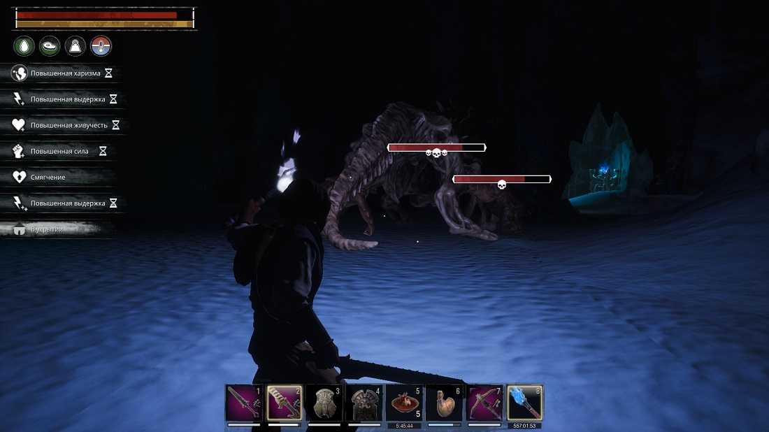 Рядом с троном Йорма находится Повелитель бурь – огромный двуручный меч, с помощью которого эффективнее всего сражаться с боссом. Старайтесь заряжать навык и использовать его, находясь за спиной или под ногами у оппонента, чтобы сбить его и нанести много урона, пока Йорм не пришел в себя.