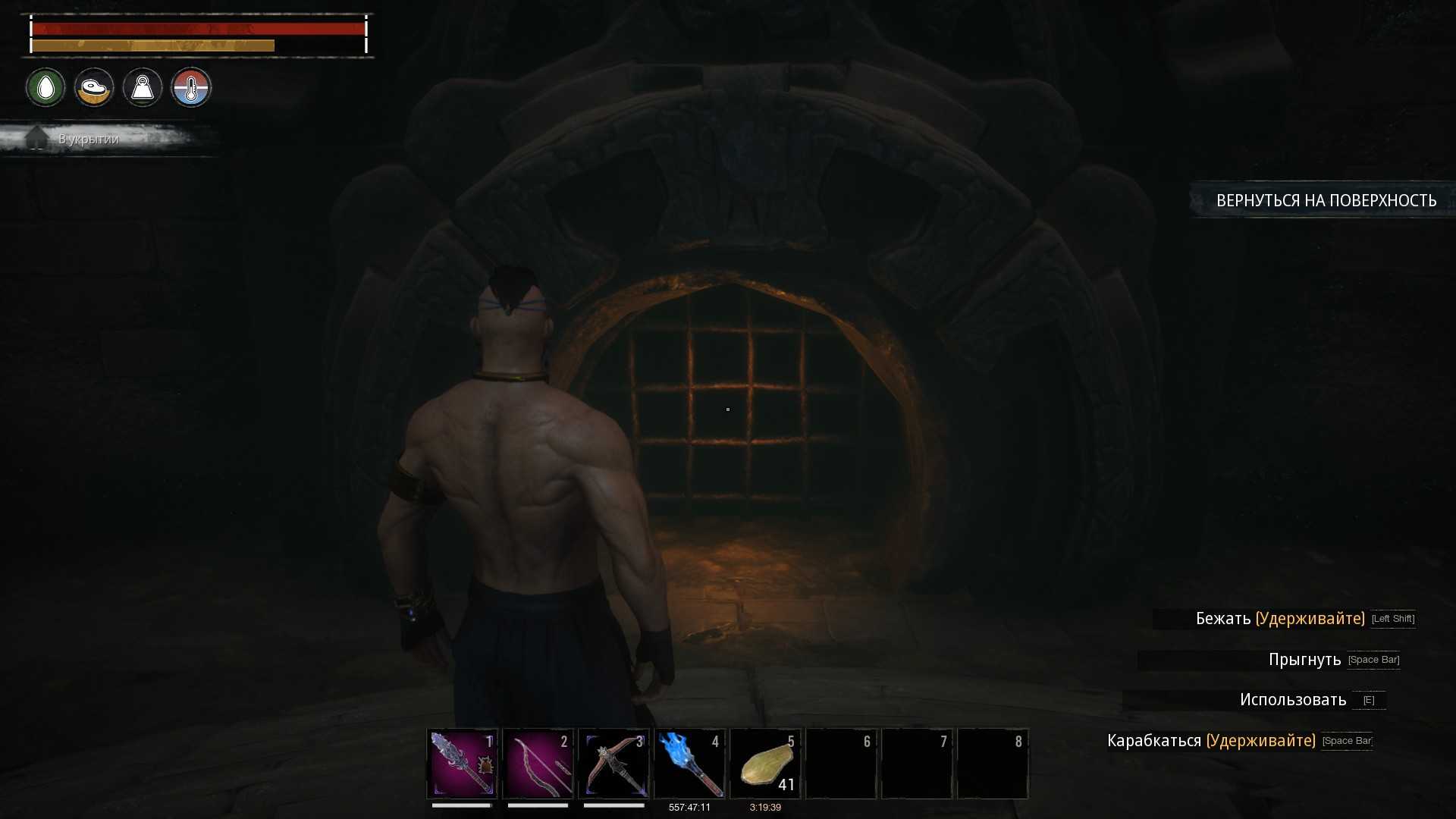 Вход в Клоаку. Возьмите с собой лечебное вещество, основное оружие, инструмент для добычи, лук и стрелы.