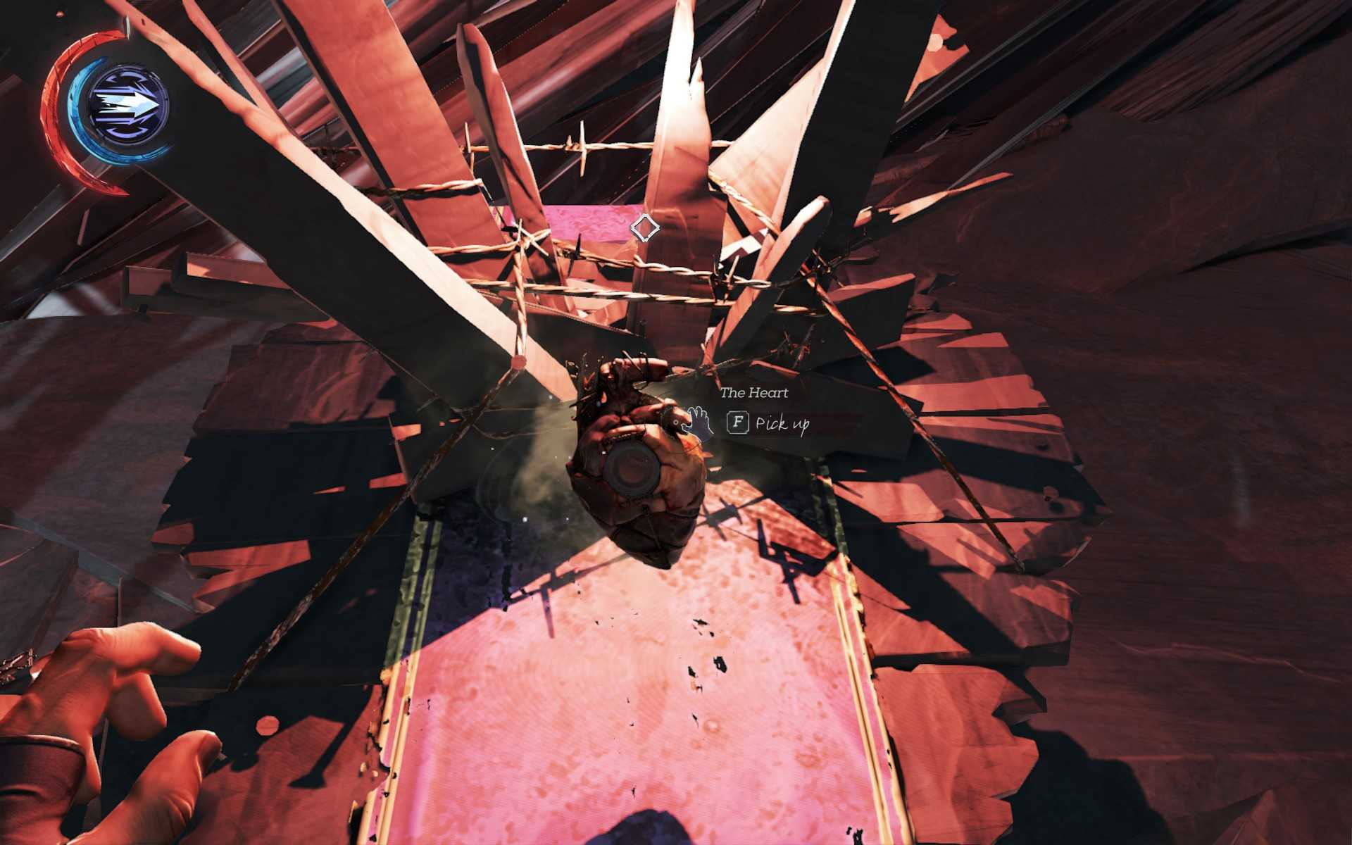 Вам вернут способность Blink из первой Dishonored. Используйте её, чтобы пройти по маркеру цели и вернуть Сердце – в нём находится по крайней мере фрагмент души Джессамин Колдуин. Что совершенно нормально. Используйте его силу, чтобы отыскать скрытые руны, пока сон не закончился (руны 1 и 2 из 10).