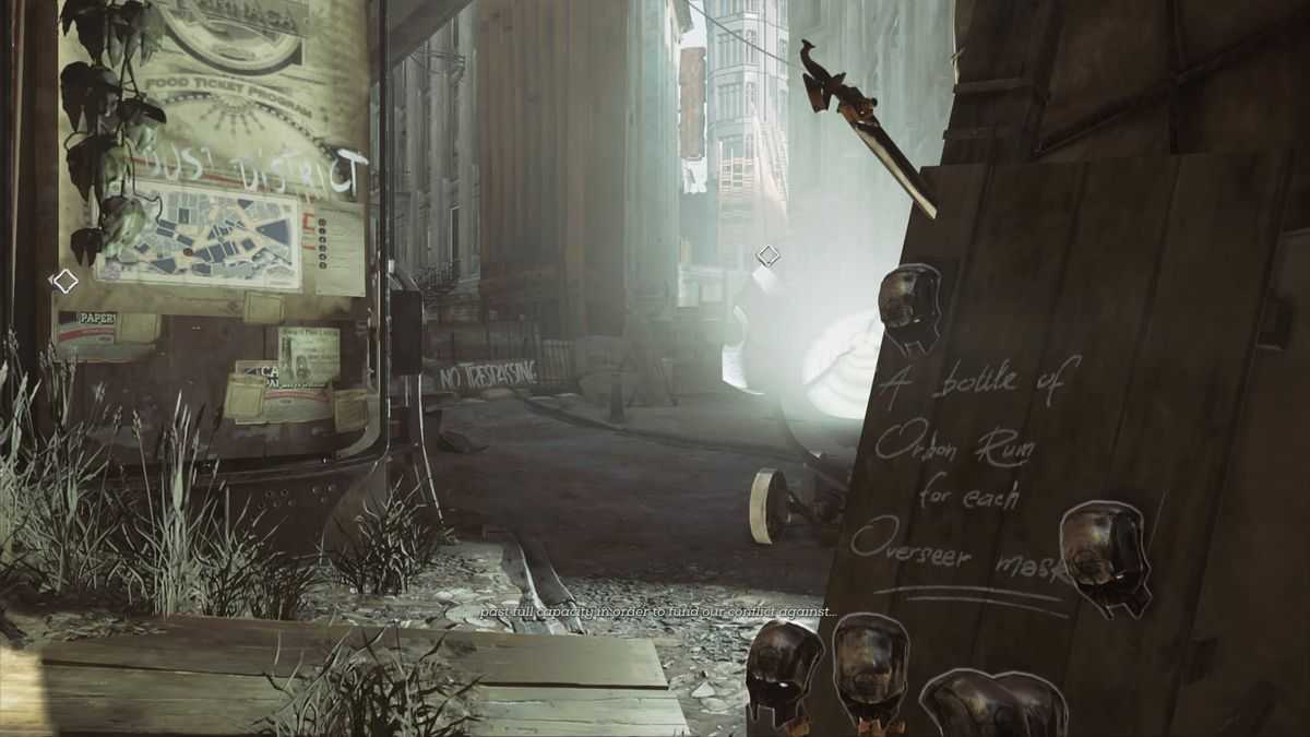 Head through the other doorway — it’s to the left of the Jindosh Lock and is decorated with Overseer masks. This is Howler territory and you’ll be attacked on sight once you pass the No Trespassing signs (or if they see you do any magic). We’re going to head to the black market first. If you’re not interested, skip down to the next section. You’re going to be coming back through here (a couple times, actually), so you can always save it for later when you have more money (and blueprints).