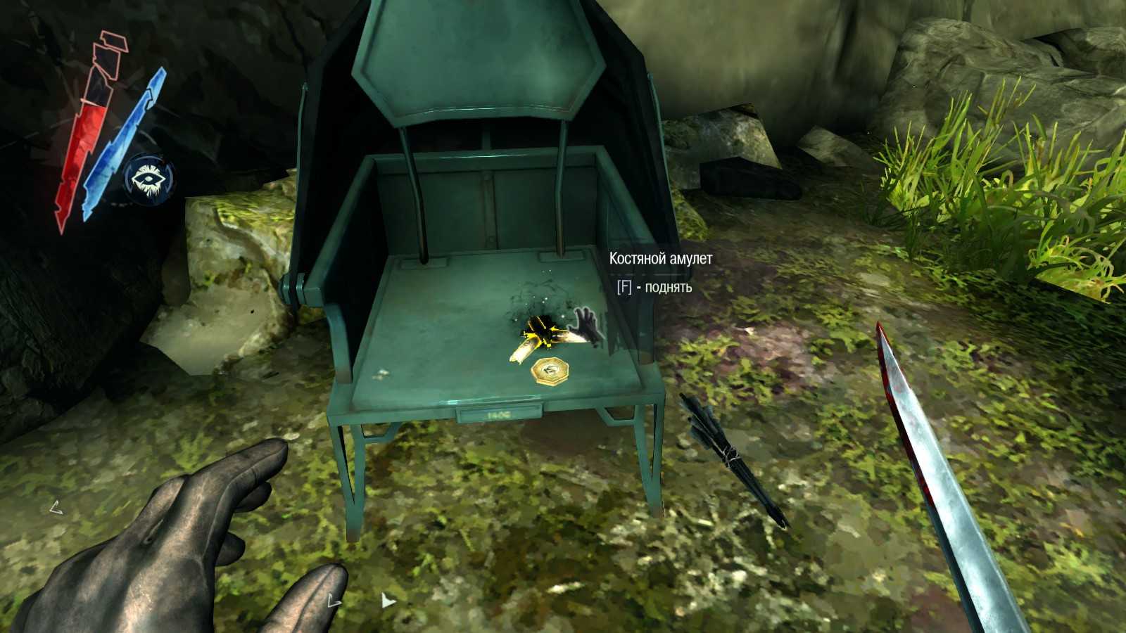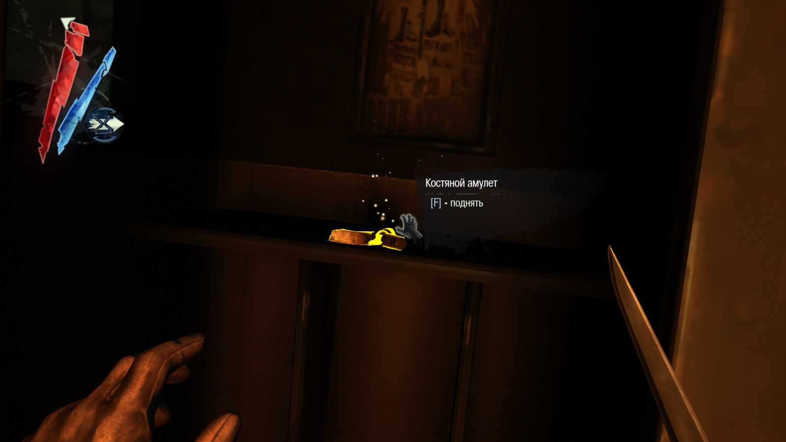 Проделав все эти действия, смело забирайте аудиограмму «Распусти, Глориана, косы» из витрины и бегите к аудиографу, что стоит недалеко от сейфа. Запустите на нём эту песню и можете забирать всё содержимое сейфа. Внутри вы найдёте: ключ Шань Юня, который необходим для задания, костяной амулет (о том, где искать остальные читайте здесь), а также заряды и монеты.