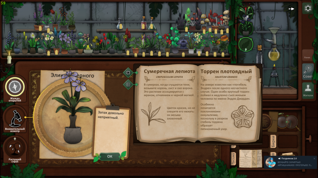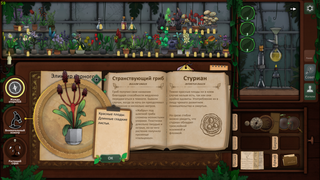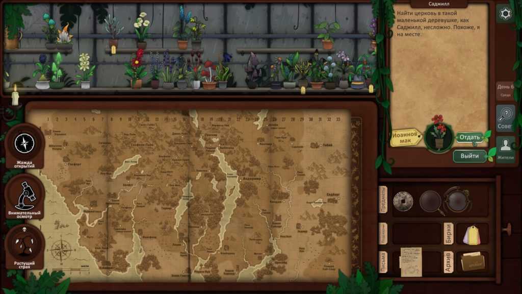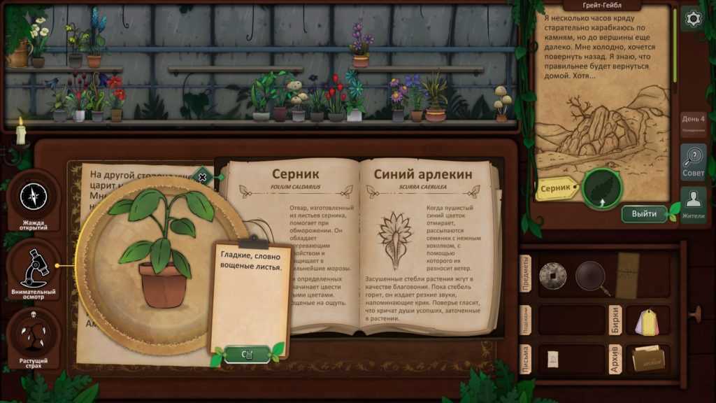 Просмотрите свою книгу, чтобы найти, какое растение также называется «Правдовидец» (это Леска Нептуна), и сколько лепестков у счастливого цветка кабаллии. Найдите на карте L7 два новых растения.