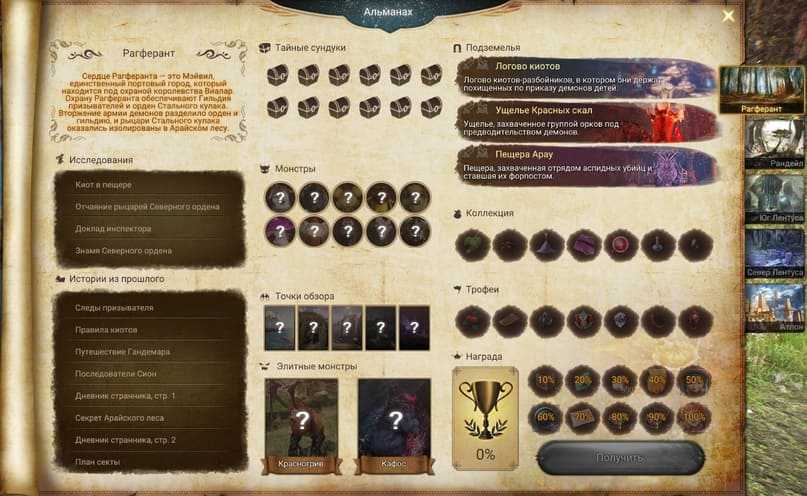 Каждые десять процентов завершенных квестов Альманаха поощряются соответствующей наградой. Не забудьте забрать заслуженные подарки за свои труды!