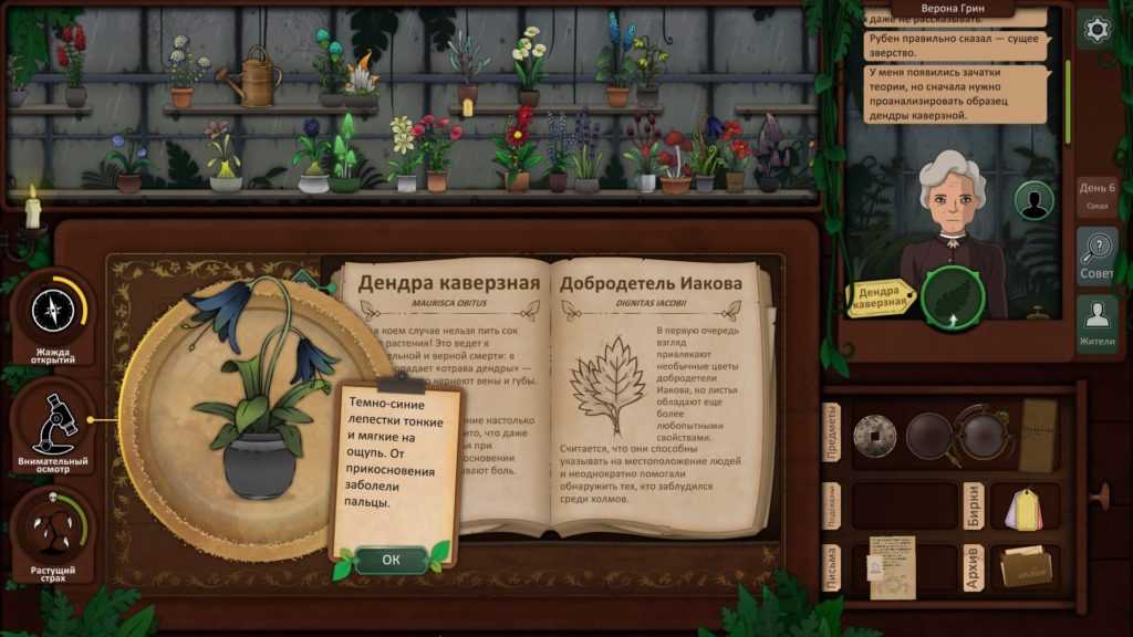 Верона вернулась из Суинсайда и хочет провести несколько тестов Дендры каверзной, чтобы узнать, использовалась ли она для отравления жертвы.
