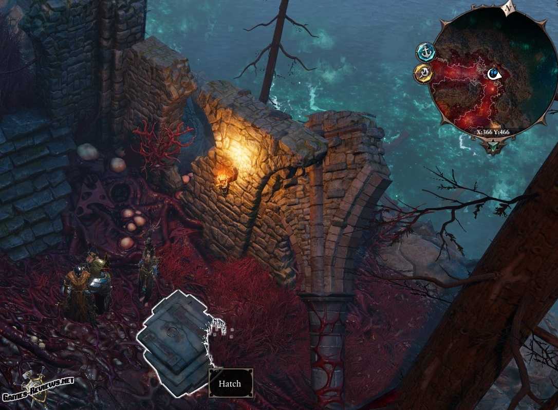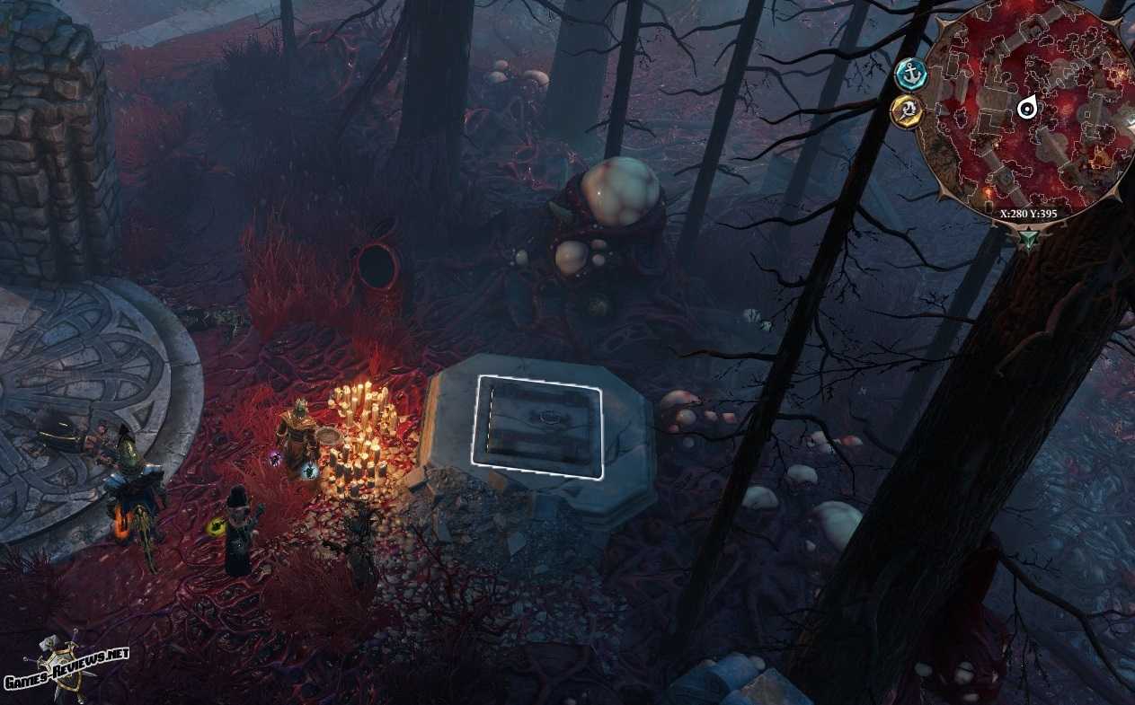 Чтобы решить эту головоломку и открыть дверь, разделите своих героев и поставьте их на соответствующую нажимную плиту. Затем установите на последнюю пластину большую каменную вазу . При наличии большого количества тяжелых предметов вы и вовсе можете обойтись без использования членов своей партии.