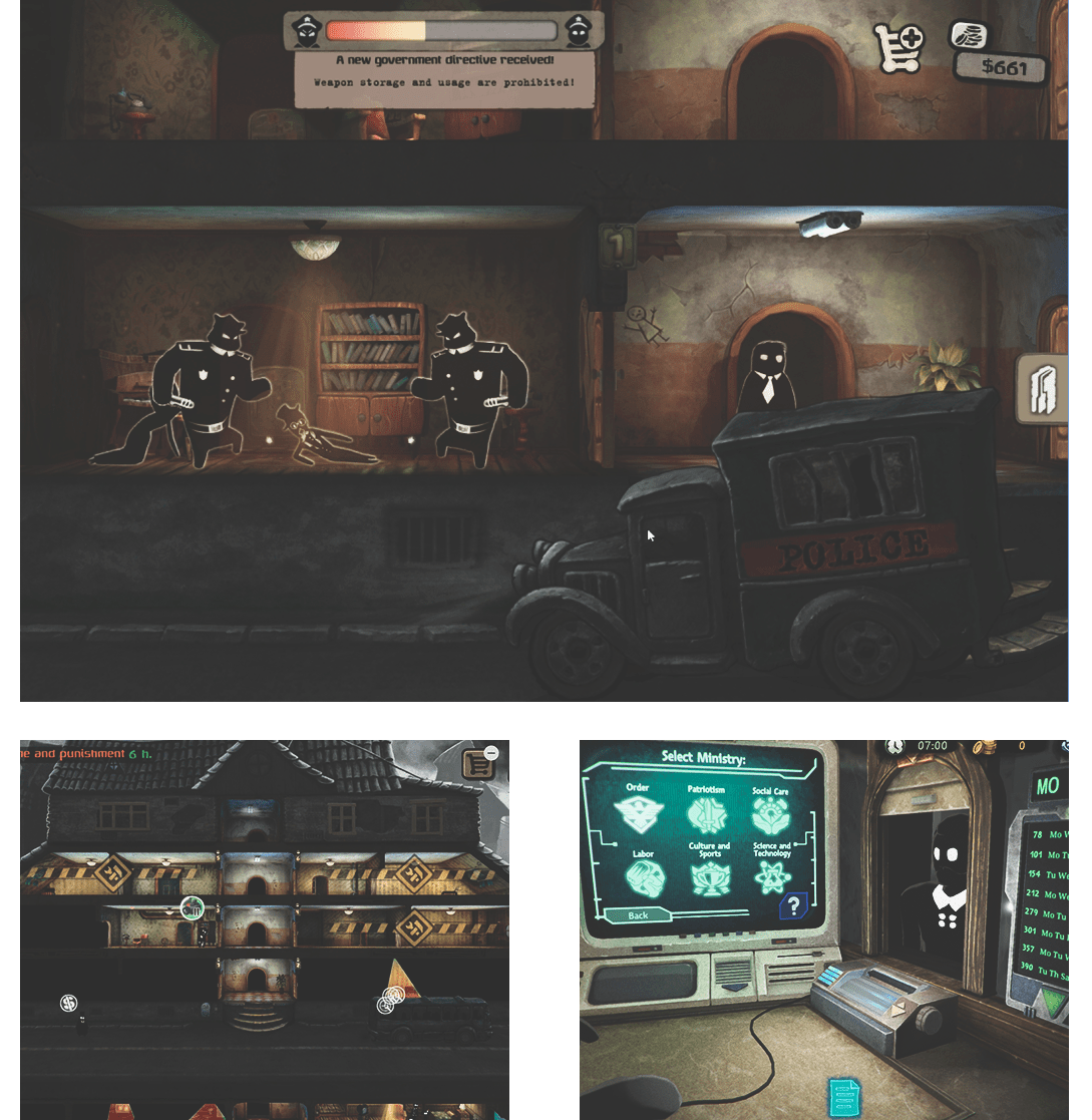 Beholder по своей сути является симулятором жизни в тоталитарном государстве. Главный герой — управляющий многоквартирным домом по имени Карл. Чтобы спасти себя и свою жену, ему приходится шпионить за жильцами и доносить на них. Каждое действие в этой игре имеет последствие: не донес вовремя — и ты в опале. Поэтому ради выживания в ход идут самые грязные приемы, начиная с клеветы и заканчивая подбрасыванием улик. Так Beholder постоянно подкидывает игроку пищу для размышлений, а тому приходится выбирать, как себя вести в той или иной ситуации. Всё это дополняется продуманным сеттингом и атмосферным саундтреком, усиливающим погружение в игровой процесс. Если игра придется тебе по душе, то после ее прохождения тебя будут ждать официальный DLC-приквел и полноценная вторая часть. Beholder 2 не только сохранила свою нелинейность, но и обзавелась новыми геймплейными особенностями.