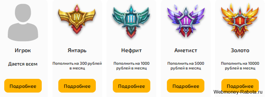 Наряду с базовыми возможностям игрокам доступен ряд поощрительных опций. Прокачивая свой игровой статус (дивизион), участники могут претендовать на дополнительные преференции в виде премиальных стикеров или участия в чате проекта. Полная информация обо всех игровых статусах размещена на официальном сайте в разделе “Дивизионы”. Максимум возможностей предоставляет дивизион “Золото”, его обладателям доступен полный функционал площадки без каких-либо ограничений.