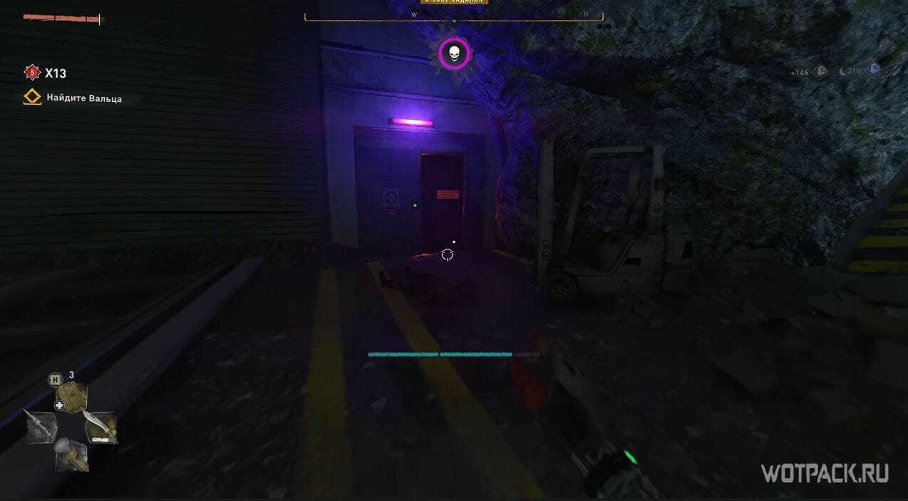 Откройте большой ящик и заберите кристалл, а затем направляйтесь по маркеру на другую крышу. Заберите надпись «Живая мертвая девочка», переберитесь на соседнее здание и спуститесь к трупам на земле, помеченным зеленым фаером (у них можно собрать полезные ресурсы). Не забудьте также забраться на дальнюю крышу, где вас ждет мачете, УФ-грибы и прочие предметы.