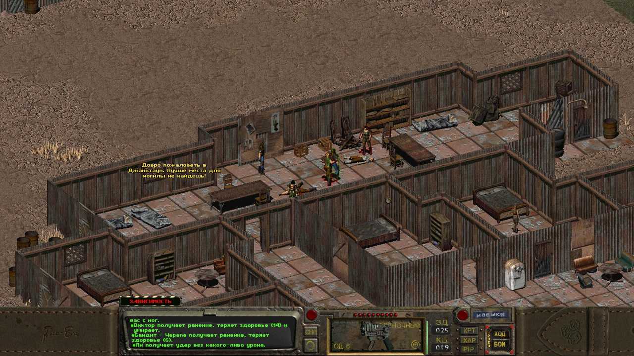 Естественно, на каждом шагу (иногда прямо во время перехода) главгероя будут пытаться убить. Придется отбиваться, благо почти всегда есть чем, с поправкой на уровень сложности и особенности движка Fallout 1.