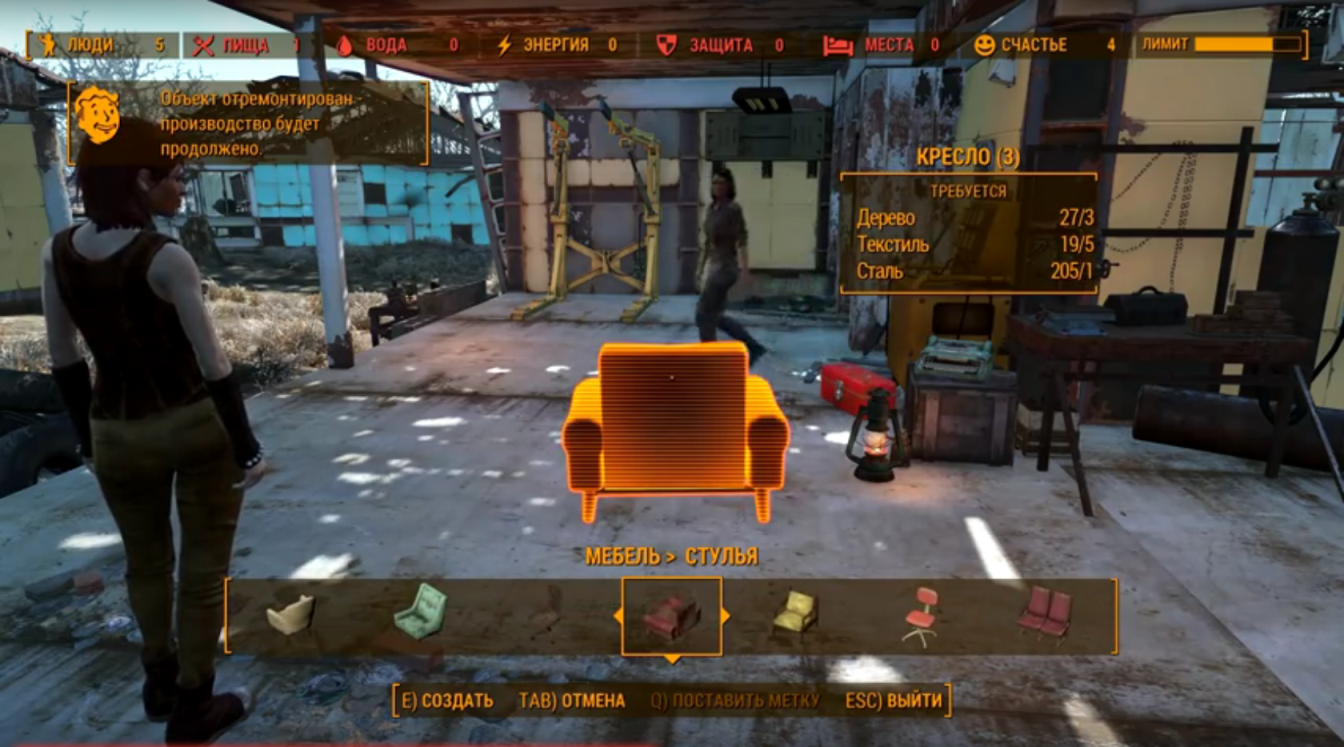Ничего не могу сказать. Лично меня строительство вообще не заинтересовало. Единственный раз, когда я что-то сознательно построил, было тогда, когда я увидел, как моя напарница и другие жители стартовой локации сидят на полу. Мне стало стыдно, и я решил поставить им стул.