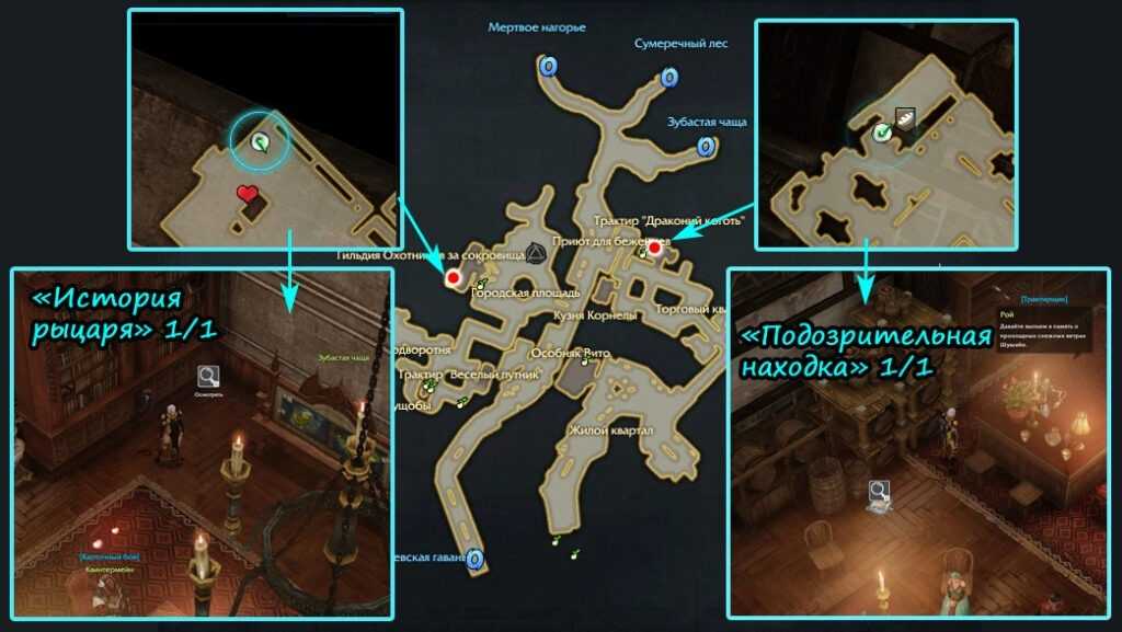 В здании гильдии Охотников за сокровищами живут Анабель и Квинтермейн, персонажи для прокачки репутации. Здесь же вы найдете скрытую записку «История рыцаря».