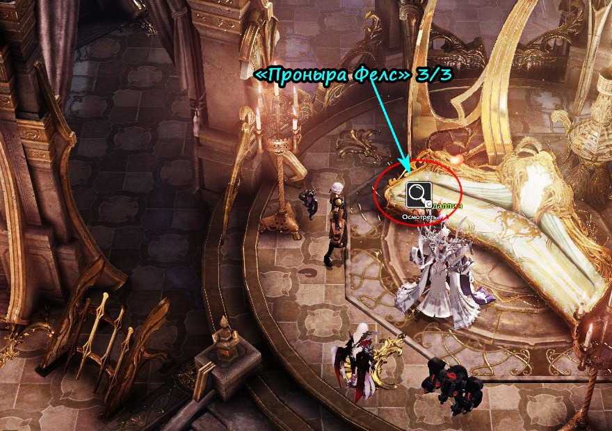 Во дворце обитают двое персонажей для прокачки репутации: королева Эадаллин и ее верная рыцарка Гвиллена. Тут же, во дворце, можно найти третью часть скрытой истории Атласа «Проныра Фелс».