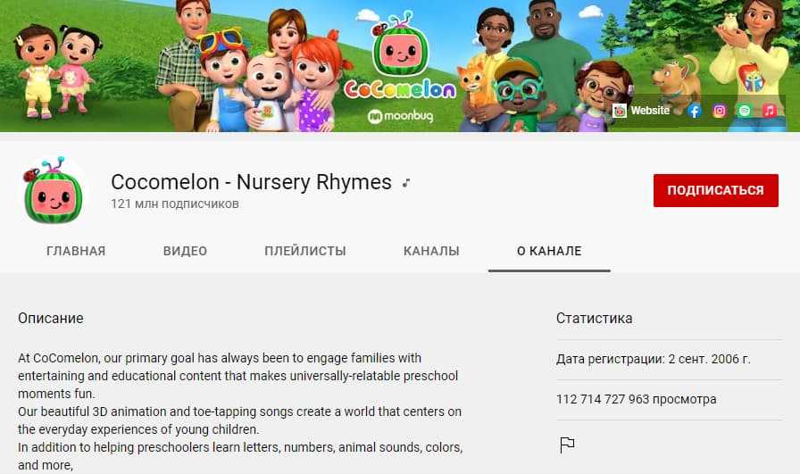 Cocomelon — канал с мультиками, песенками и играми для детей. У него 112 млрд просмотров и 121 млн подписчиков. Каждый месяц он приносит авторам 8 млн долларов.