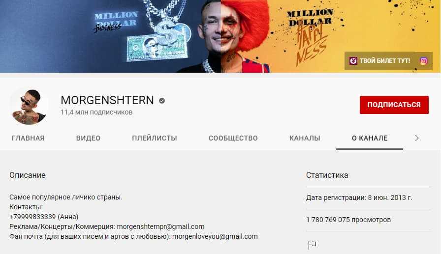 Моргенштерн — блогер и певец с 11,4 млн подписчиков и 1,7 млрд просмотров. На ютубе он зарабатывает около 3 млн долларов в год.