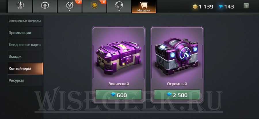 В игре пользователь получает специальные боксы с наградами в виде кредитов, алмазов и карточек. Контейнер можно приобрести за алмазы, получить в качестве награды за вход или повышение уровня, заказать его доставку.