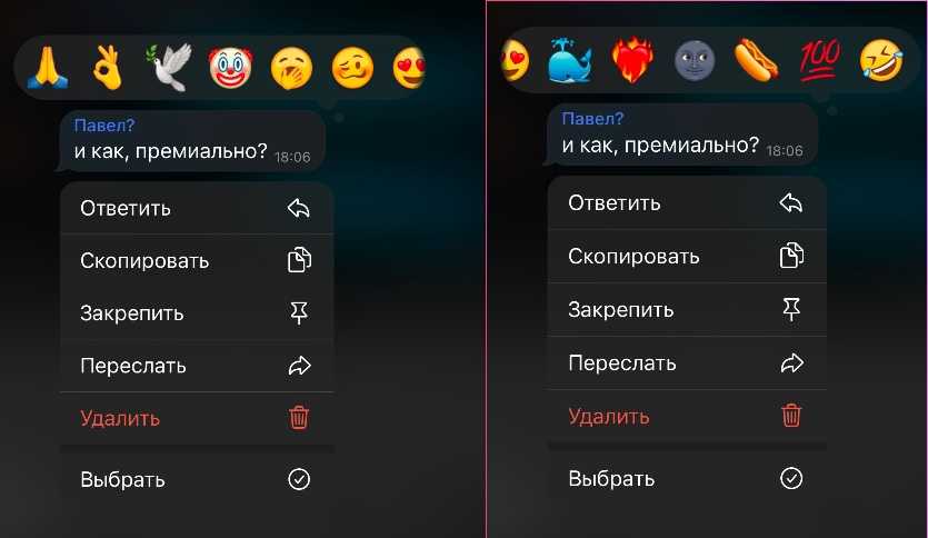 Здесь доступно 10 бонусных реакций — итого 30. Каждая имеет собственную анимацию при выделении сообщения.