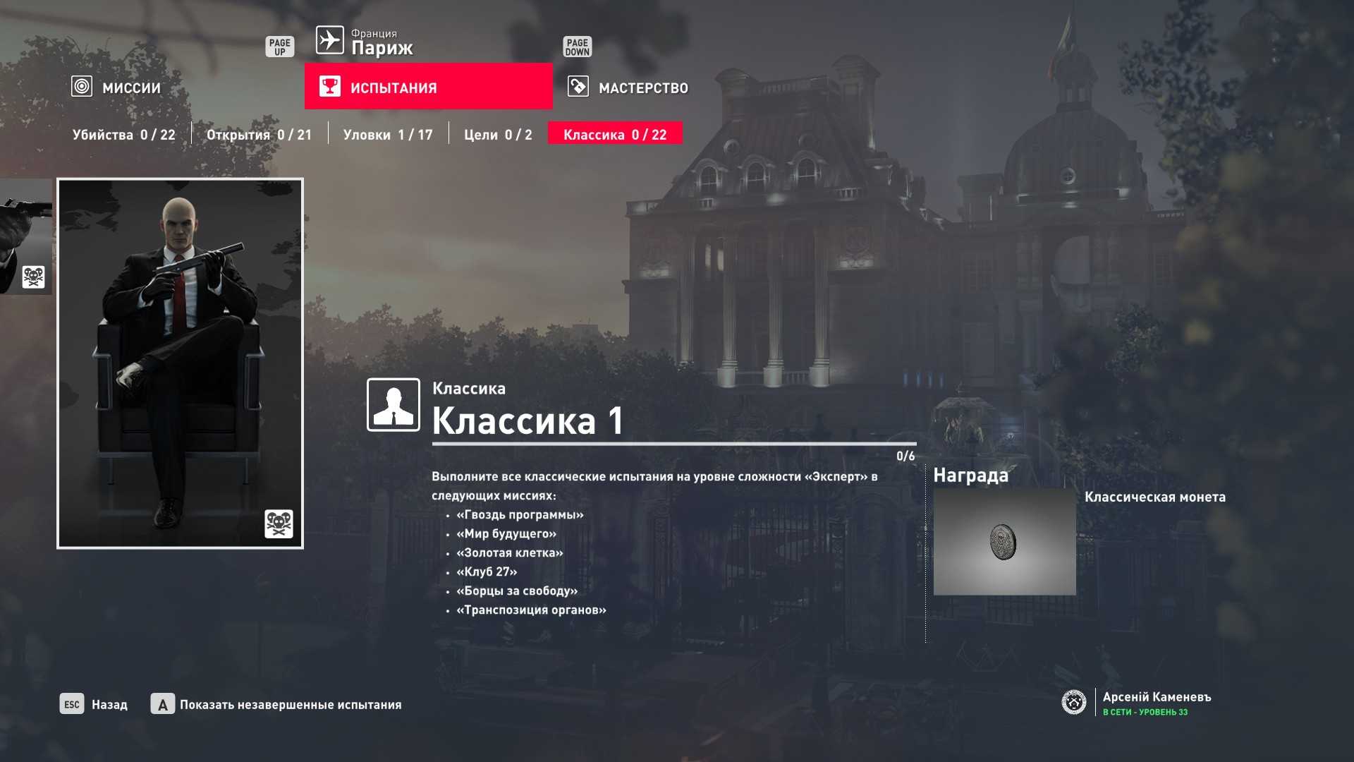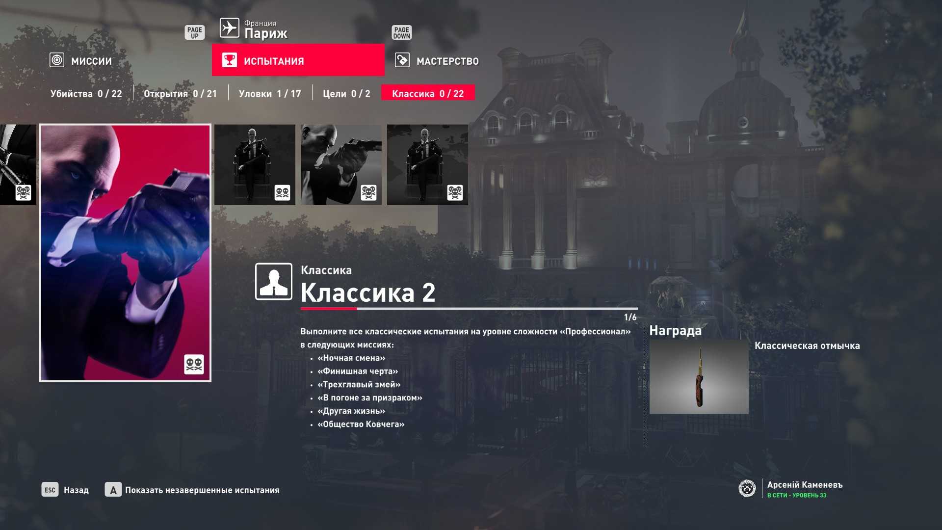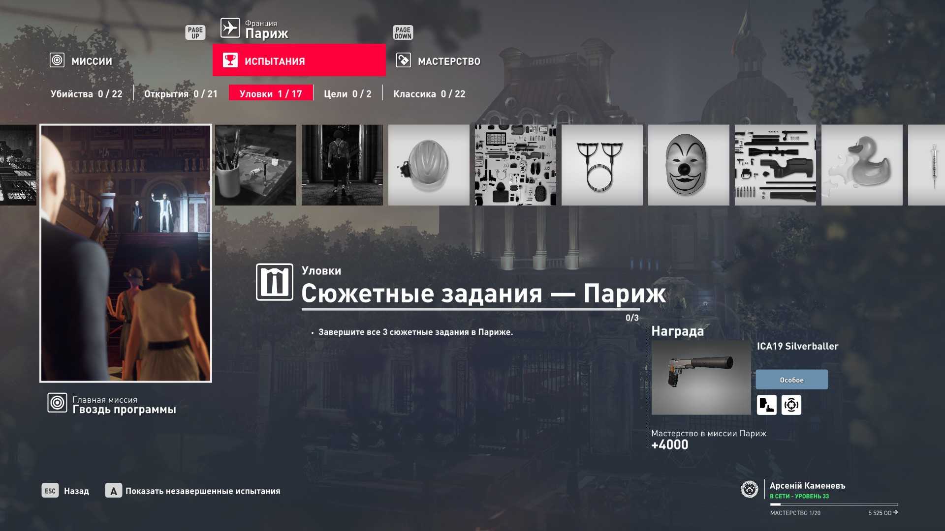Хинт: №2 прохождение миссии на сложности “Эксперт” “с нуля” на “Silent Assassin” даёт 10-12 уровень мастерства в зависимости от выполнения сопутствующих испытаний (проверено лично на миссиях в Париже и Сапиенце).