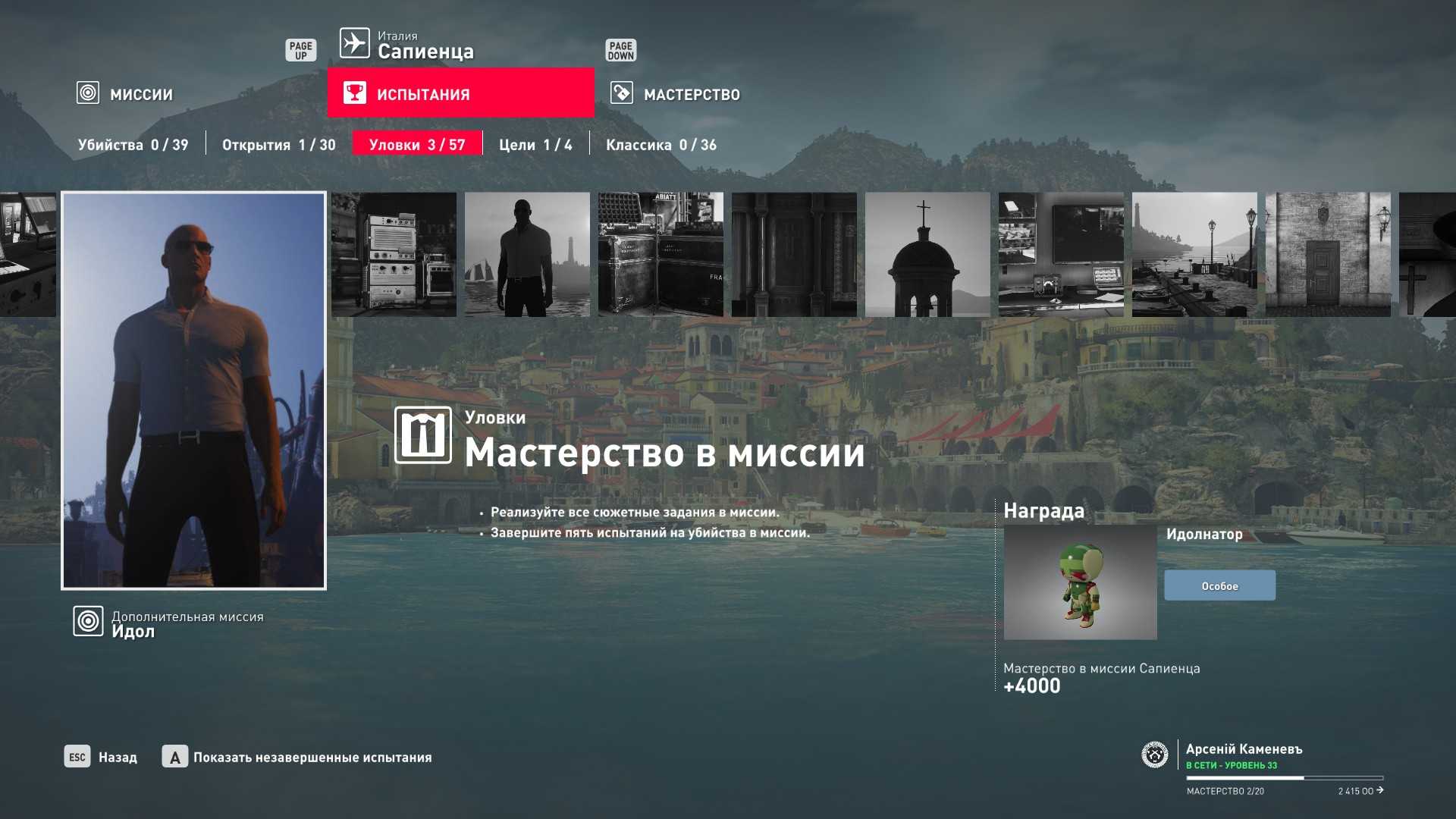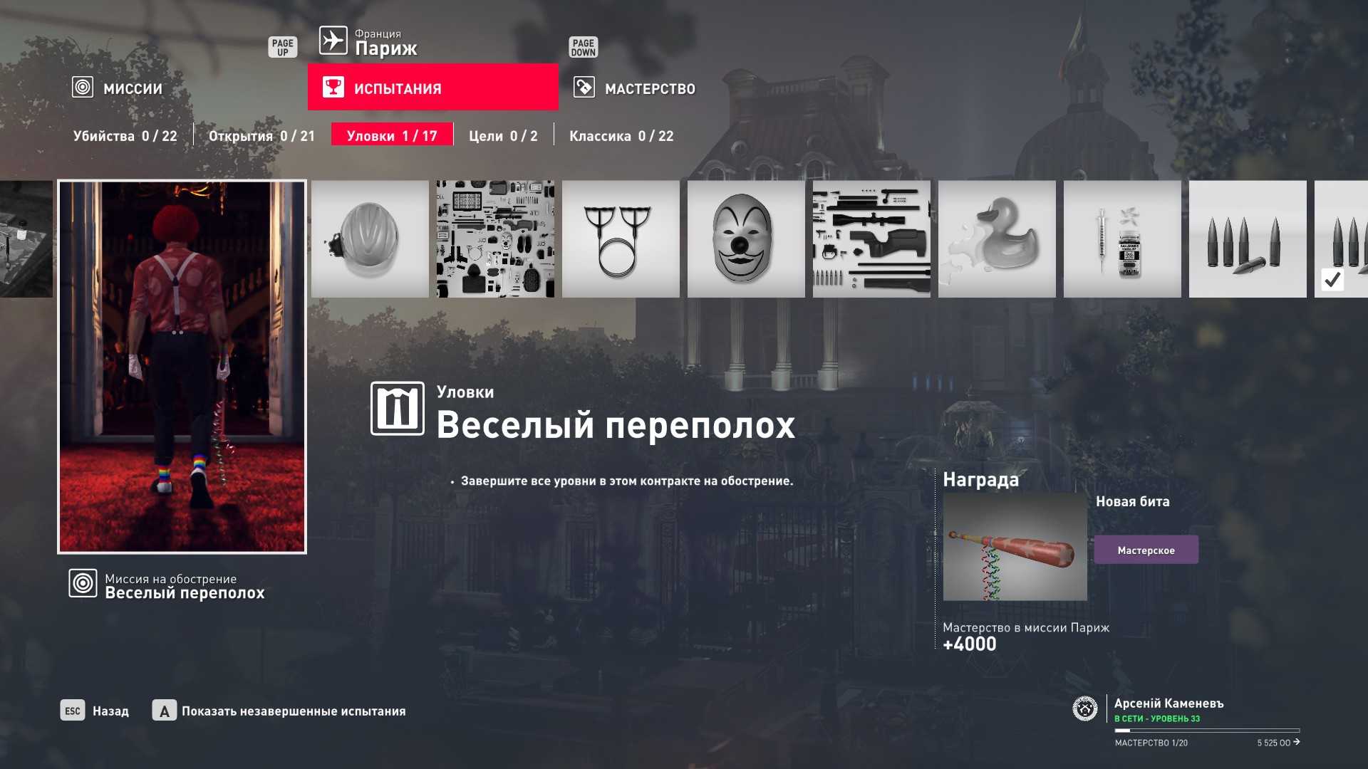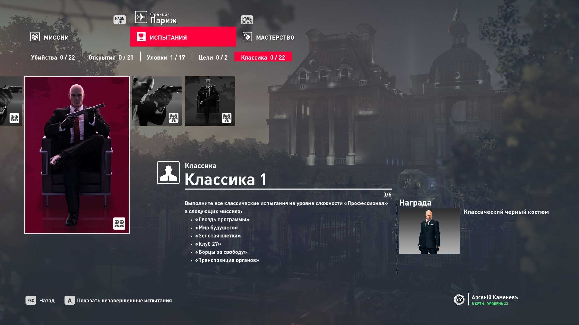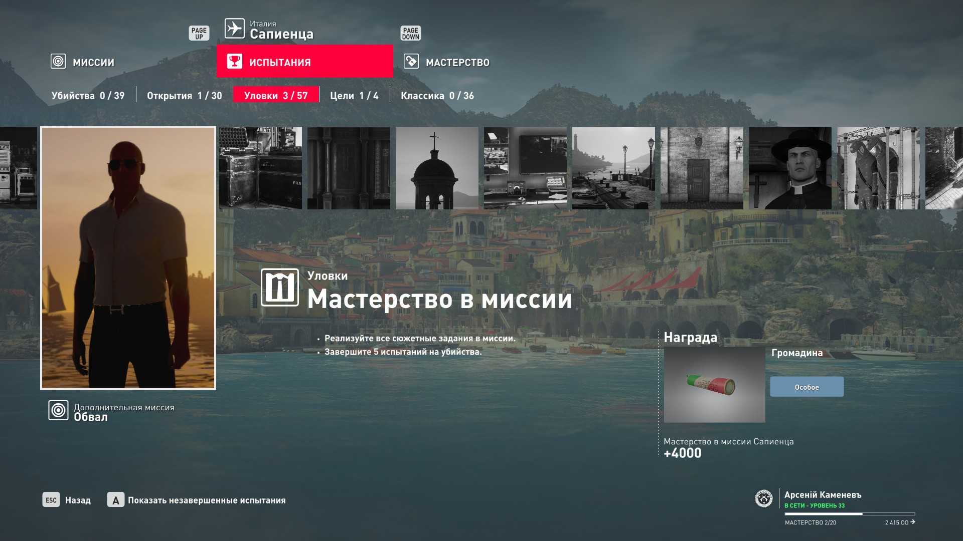 Хинт: №2 прохождение миссии на сложности “Эксперт” “с нуля” на “Silent Assassin” даёт 10-12 уровень мастерства в зависимости от выполнения сопутствующих испытаний (проверено лично на миссиях в Париже и Сапиенце).