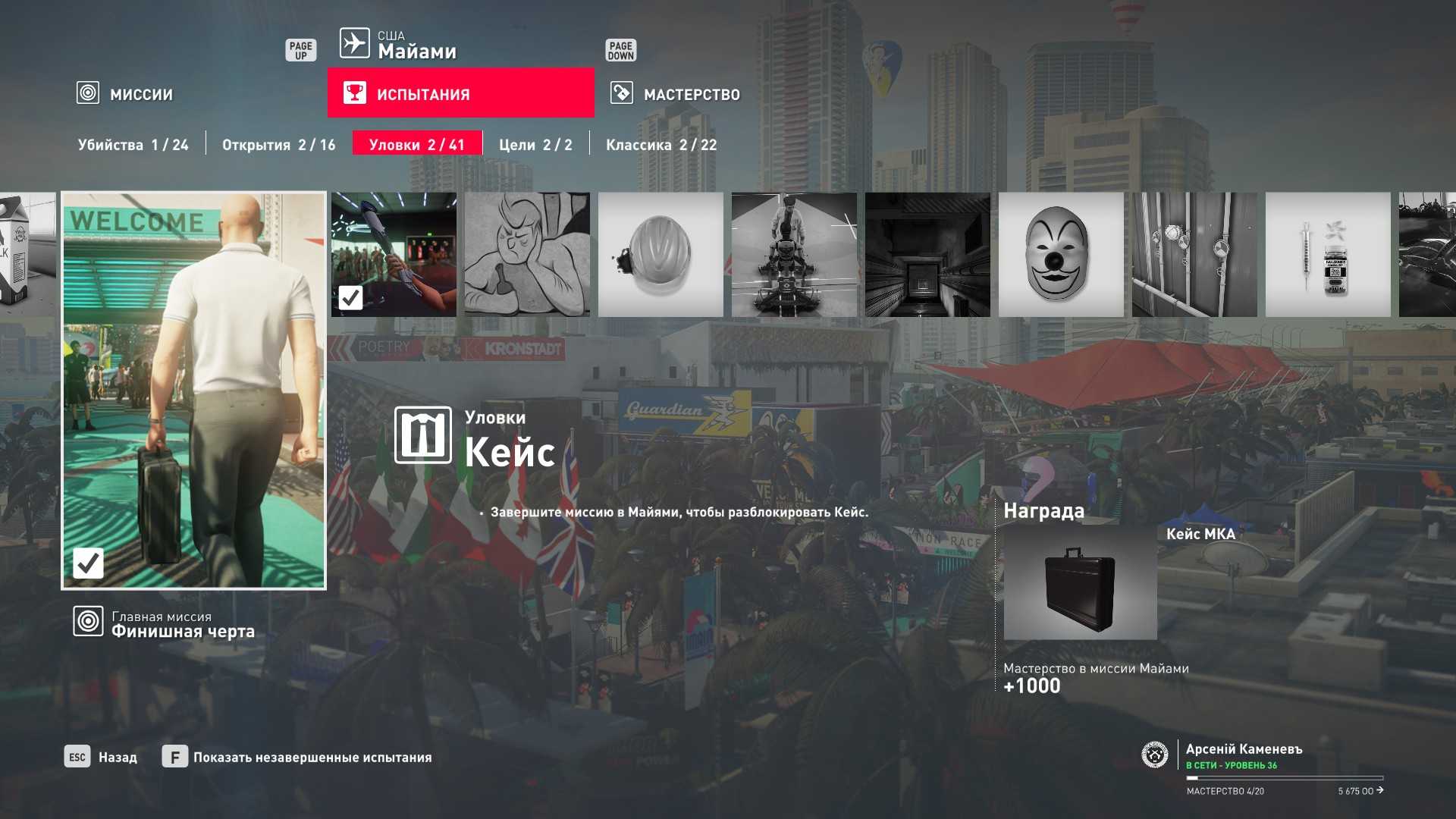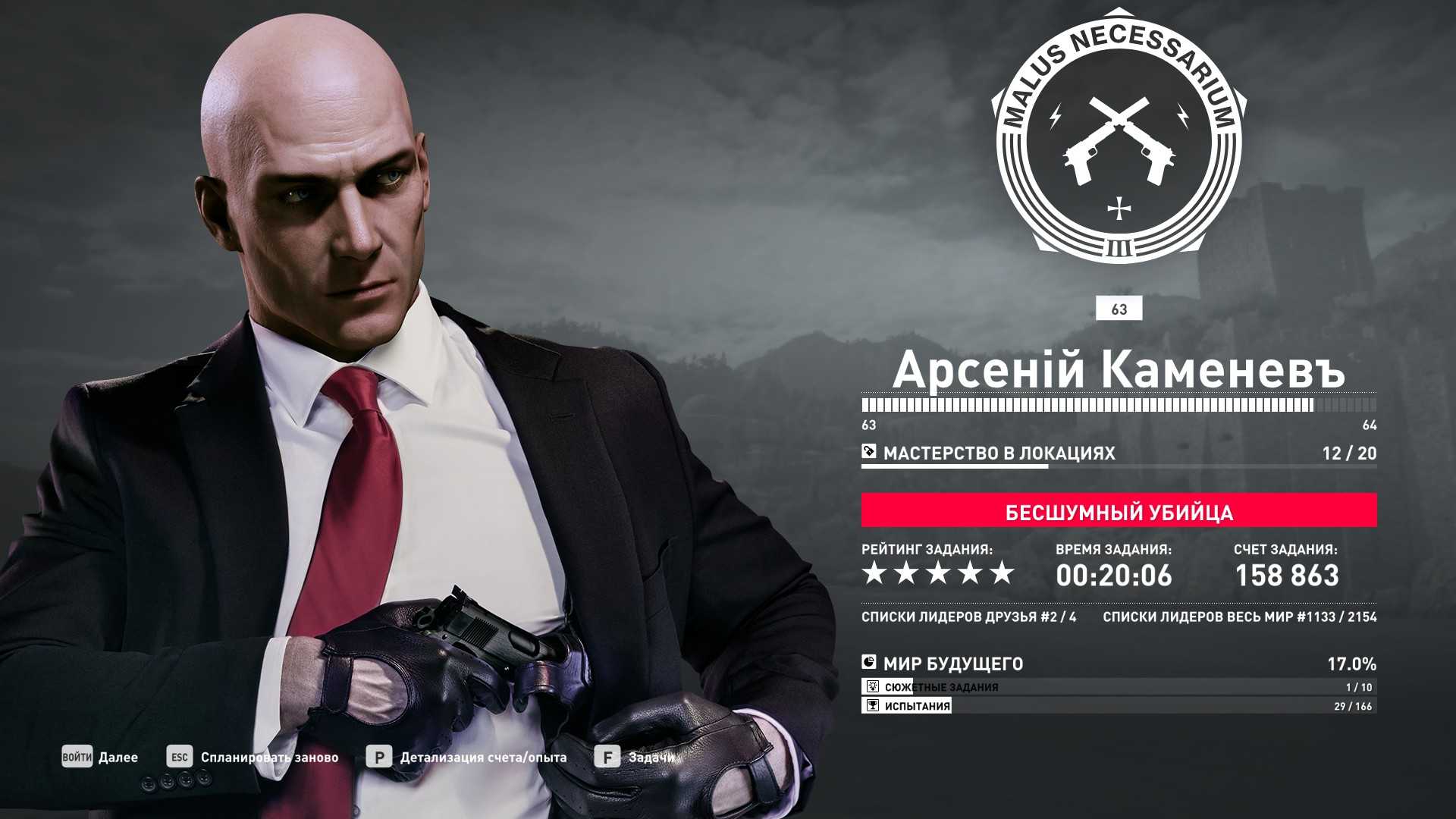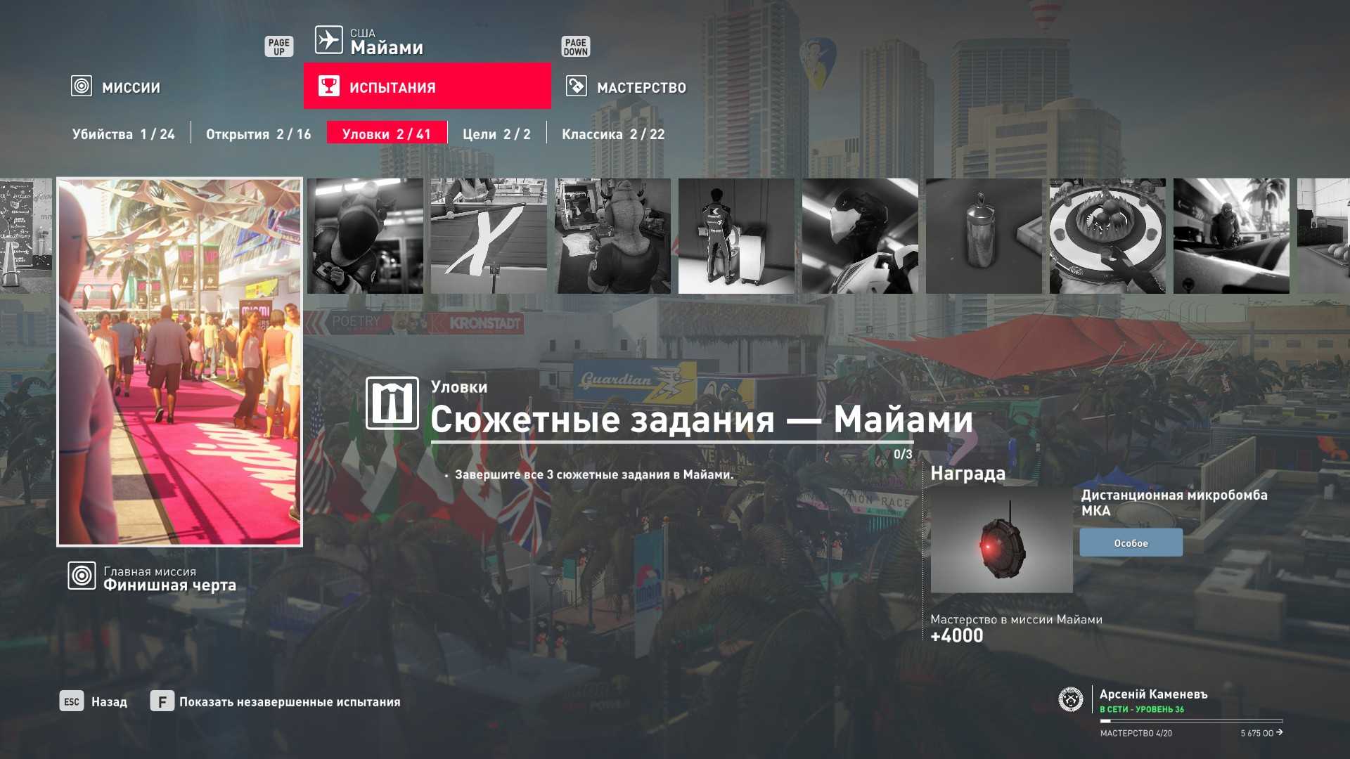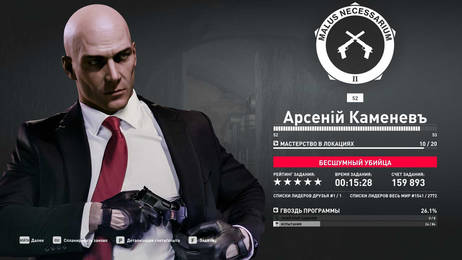 3 уровень мастерства: Тайник МКА в садовом сарае 4 уровень мастерства: Начальная точка в номере Агента 47